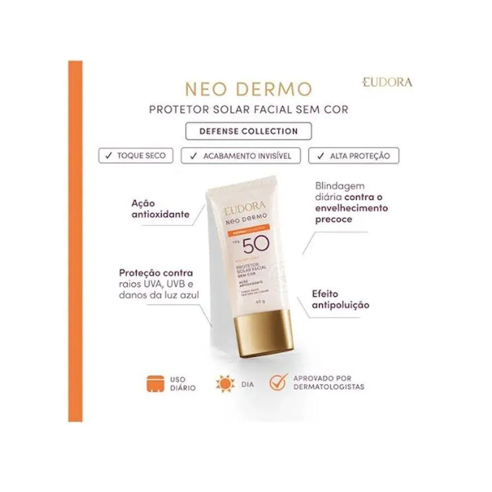 - Protetor solar FPS 50 que oferece alta proteção contra raios UVA e UVB.