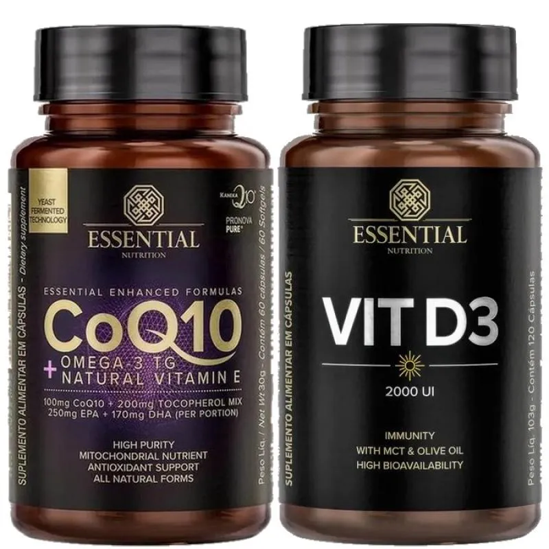 Combo Vitamina D (120 Caps) + Coenzima Q10 (60 Caps) Essential Nutrition