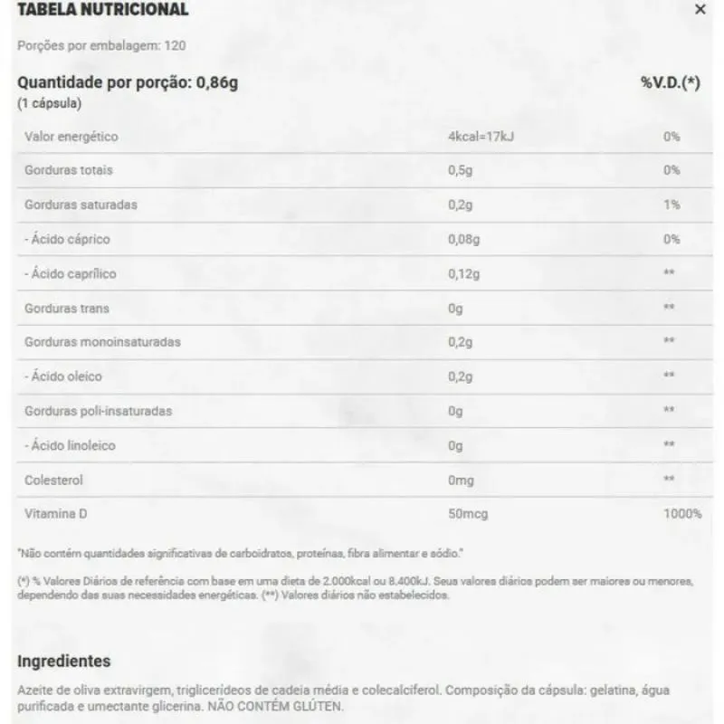 VIT D3 traz a vitamina D em sua forma ativa (colecalciferol), em um meio lipofílico (com azeite de oliva extravirgem prensado a frio e TCM).