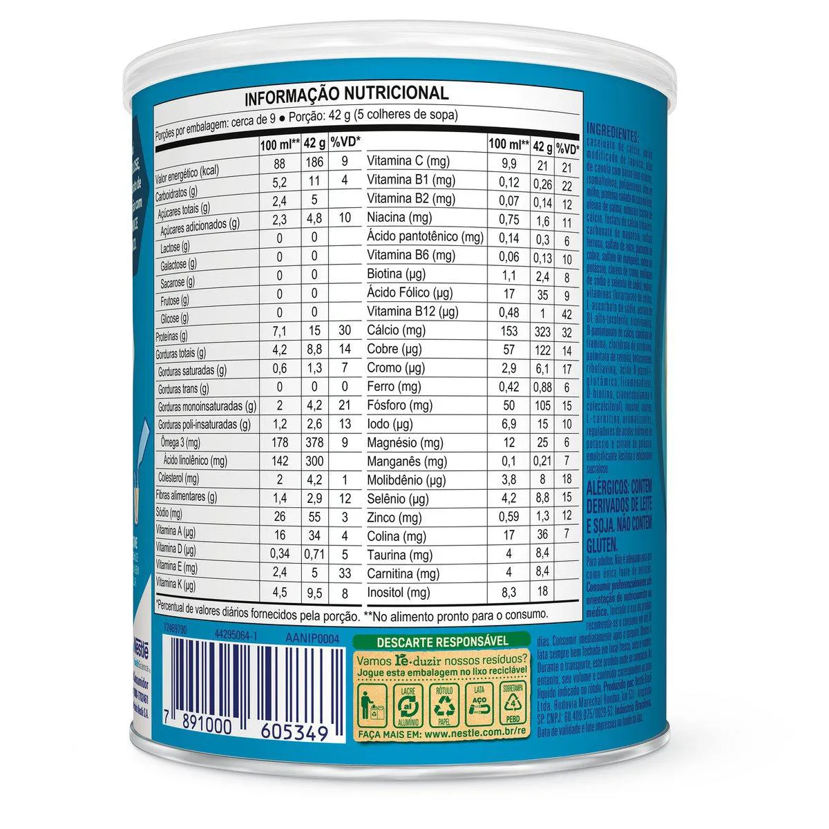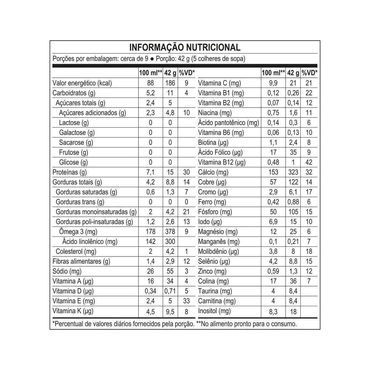 Pó para o preparo de bebidas diet, com isomaltulose, um carboidrato de lenta absorção com baixo índice glicêmico, rico em proteínas* (15g/porção), com caseinato e whey protein e fonte de fibras*, ômega-3* e vitaminas e minerais. Isento de sacarose, frutose, glicose e lactose**.*Na porção preparada de 200mL. **Este não é um alimento baixo ou reduzido em gorduras saturadas.