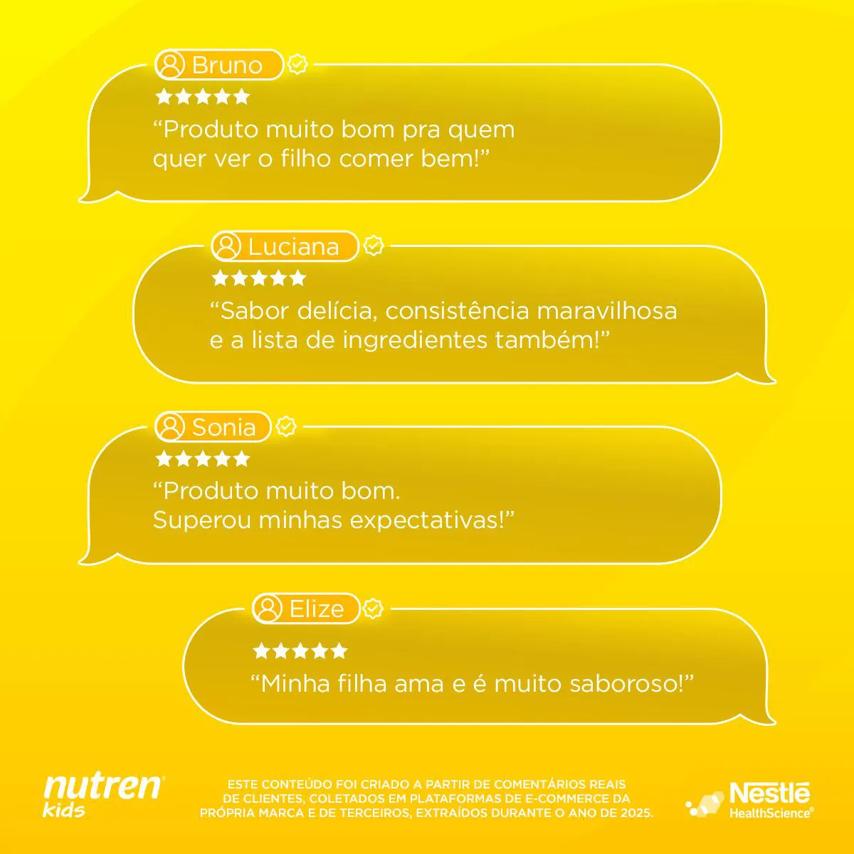 Complemento alimentar para auxiliar na alimentação das crianças a partir de 3 anos de idade. Com cereais (fonte de fibras) e 25 vitaminas e minerais.