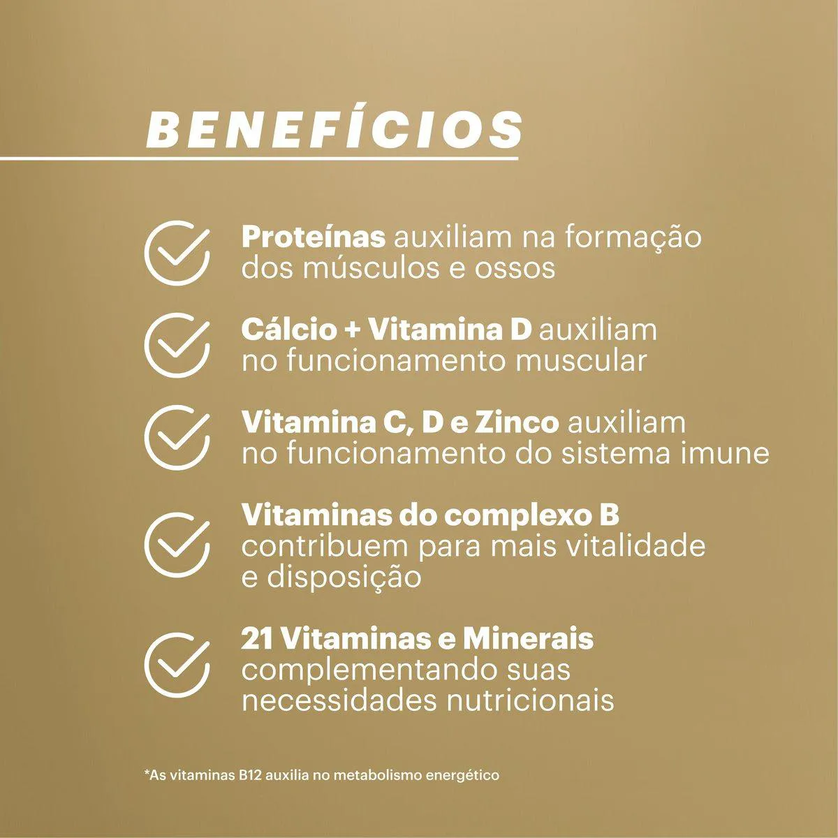 composto lácteo com cálcio, proteínas, vitamina d e outros nutrientes essenciais. Reduzido em açúcares (este não é um alimento baixo ou reduzido em valor energético – comparado ao alimento de referência do mesmo fabricante).