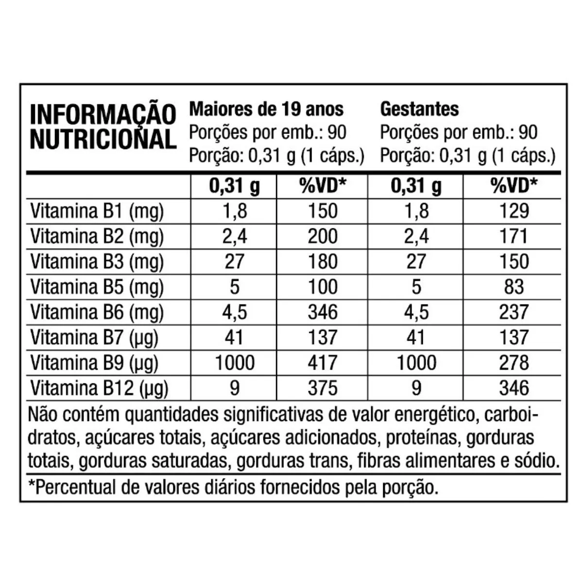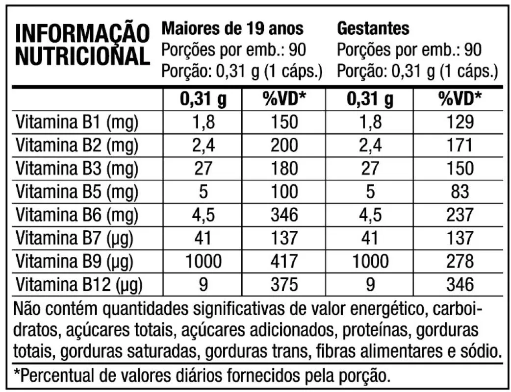 Atenção especial as vitaminas B9 e B12 que estão em forma ativa, metilfolato e metilcobalamina, o que entrega melhor absorção pelo organismo.