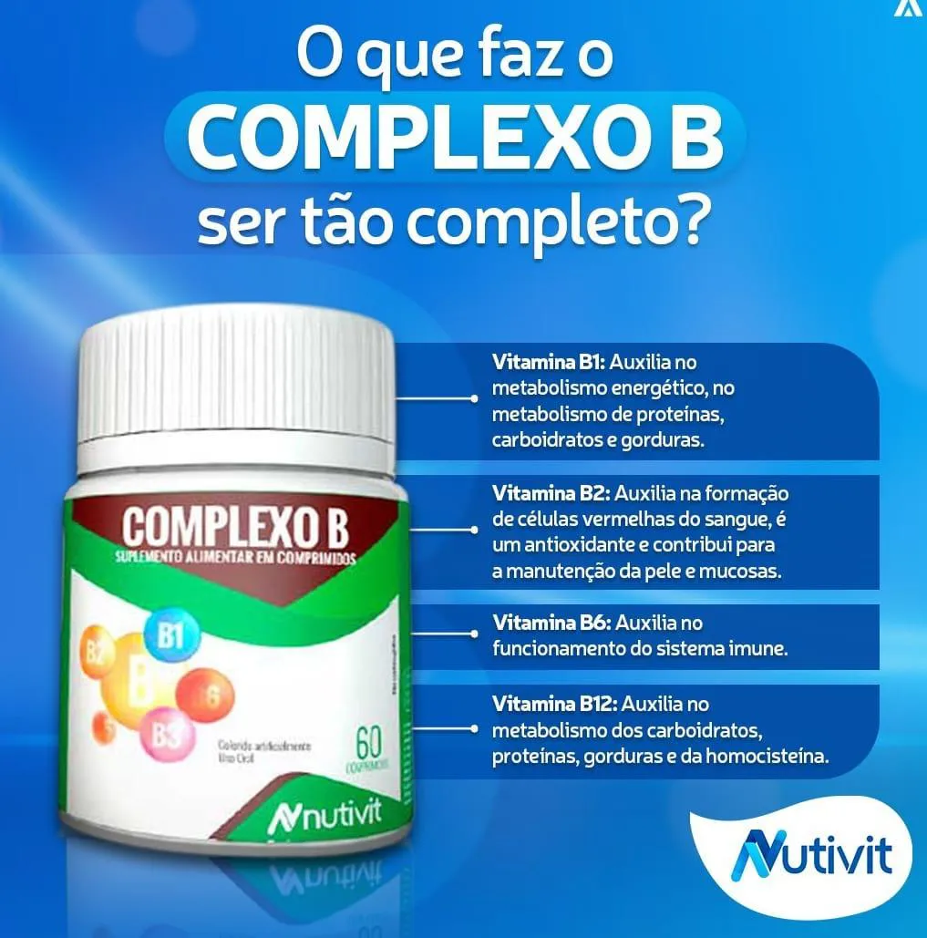 COMPLEXO B VITAMINAS B1, B2, B3, B5, B6, B7, B12 C/ 60 CáPSULAS NUTIVIT