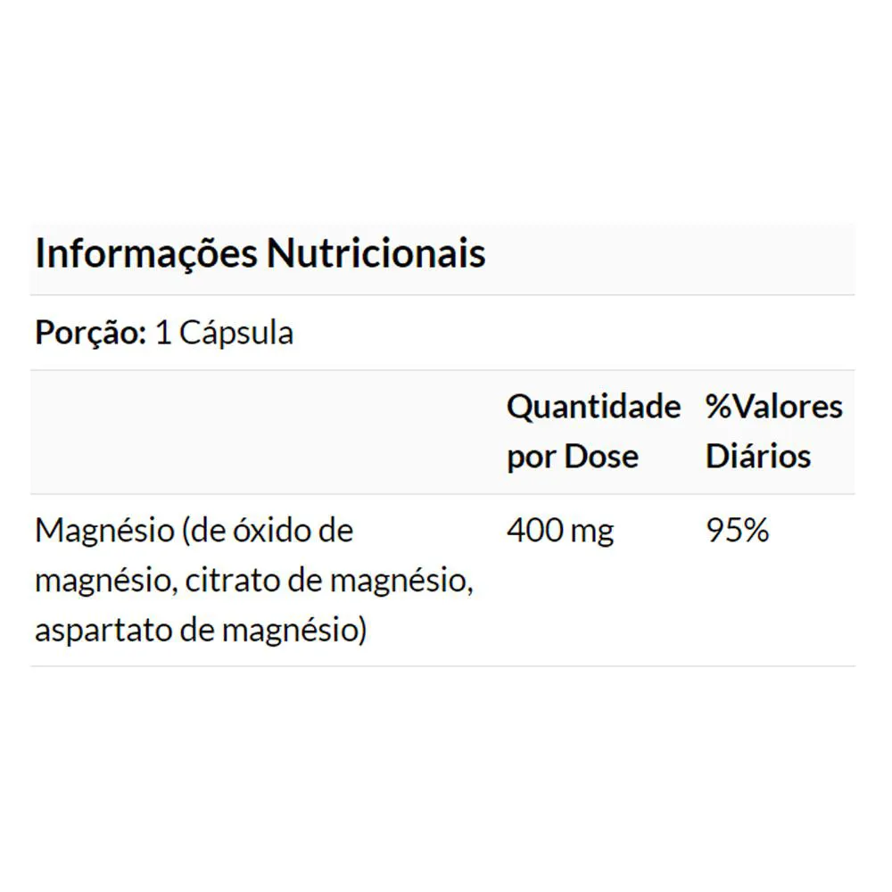 Fórmula avançada para máxima absorção: o Complexo Triplo de Magnésio da Swanson foi desenvolvido pensando em eficiência e absorção. Outros ingredientes: Gelatina, estearato de magnésio, sílica. Uso sugerido : Como suplemento dietético, tomar uma cápsula por dia com comida e água;