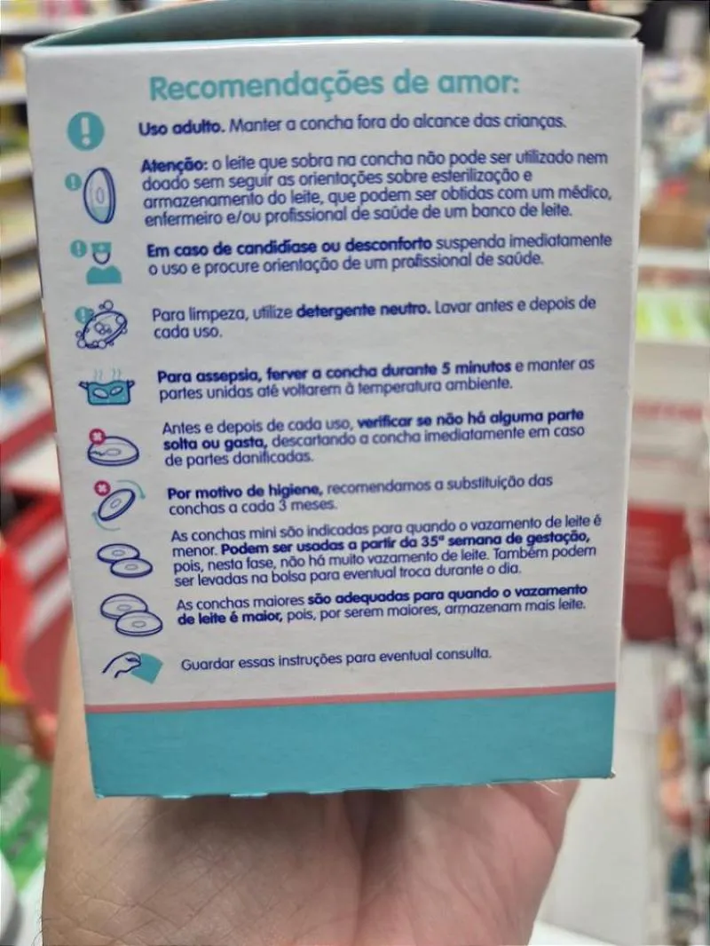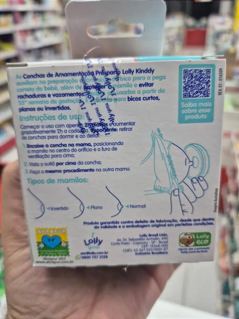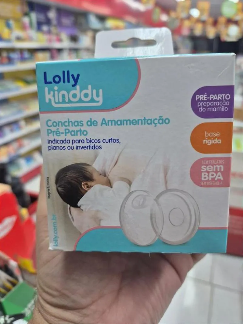 2 Conchas de amamentação Pré-parto Lolly Kinddy. Válvula de ventilação que evita lesões e favorece a cicatrização. Auxiliam na preparação e formação do bico para a pega correta do bebê, além de proteger o mamilo e evitar rachaduras e vazamentos. Podem ser usadas a partir da 35ª semana de gestação. É indicada para bicos curtos, planos ou invertidos. * A Organização Mundial da saúde (OMS) e o Ministério da Saúde do Brasil recomendam aleitamento materno por dois anos ou mais, sendo exclusivo nos primeiros seis meses.
