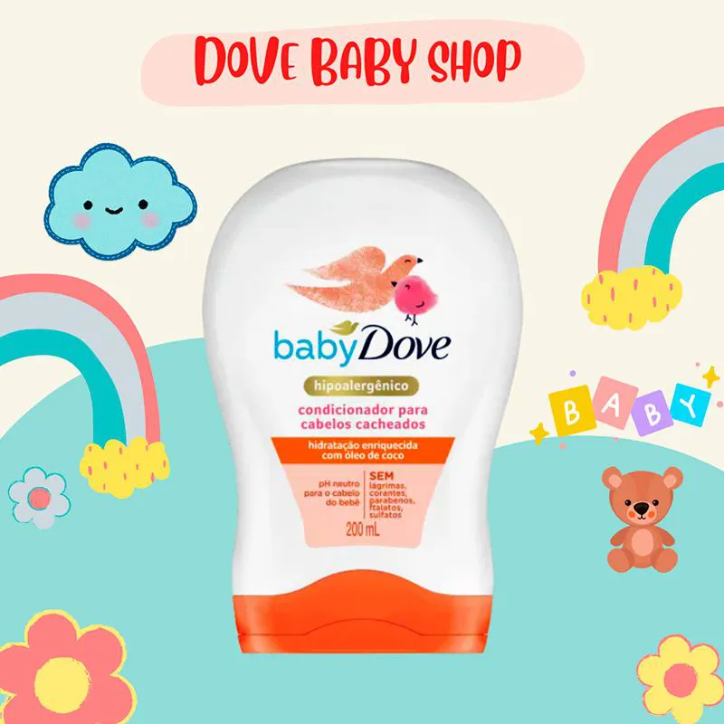 O Condicionador Baby Dove Cabelos Cacheados 200ml foi desenvolvido especialmente para cuidar dos delicados cachinhos do seu bebê, oferecendo hidratação e nutrição profunda desde o primeiro uso. Enriquecido com óleo de coco, ajuda a desembaraçar os fios com facilidade, deixando-os macios, brilhantes e saudáveis, sem agredir o couro cabeludo. Sua fórmula é hipoalergênica, livre de lágrimas, sem parabenos, glúten ou crueldade animal, garantindo segurança e suavidade durante o banho. Dermatologicamente testado, o condicionador é ideal para uso diário, proporcionando uma rotina de cuidado repleta de amor e proteção. Com uma fragrância delicada e agradável, transforma o momento do banho em uma experiência relaxante e carinhosa para o bebê e para os pais.Benefícios e Diferenciais