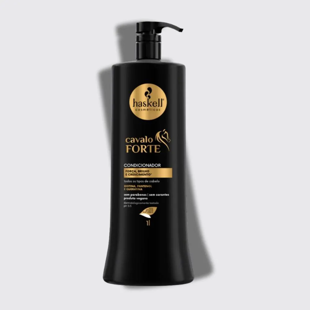 01 – Condicionador Haskell Cavalo Forte Fortalecimento 1 L Sugestão de uso complementar Shampoo Cavalo Forte — limpeza fortalecedora Máscara Cavalo Forte — reposição de massa intensiva Tônico Capilar Cavalo Forte — estimula crescimentoQual a Composição?