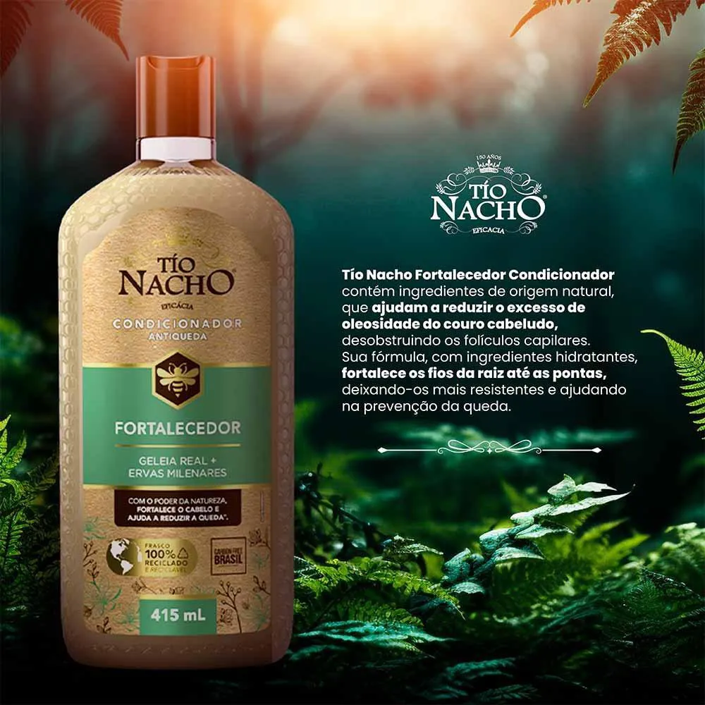 O Tio Nacho Fortalecedor Ervas Milenares é um produto especialmente formulado para revitalizar cabelos fracos e quebradiços. Sua principal função é fortalecer os fios, reduzindo a quebra e a queda capilar. Além disso, ele ajuda a diminuir a oleosidade do couro cabeludo, proporcionando uma sensação de frescor.