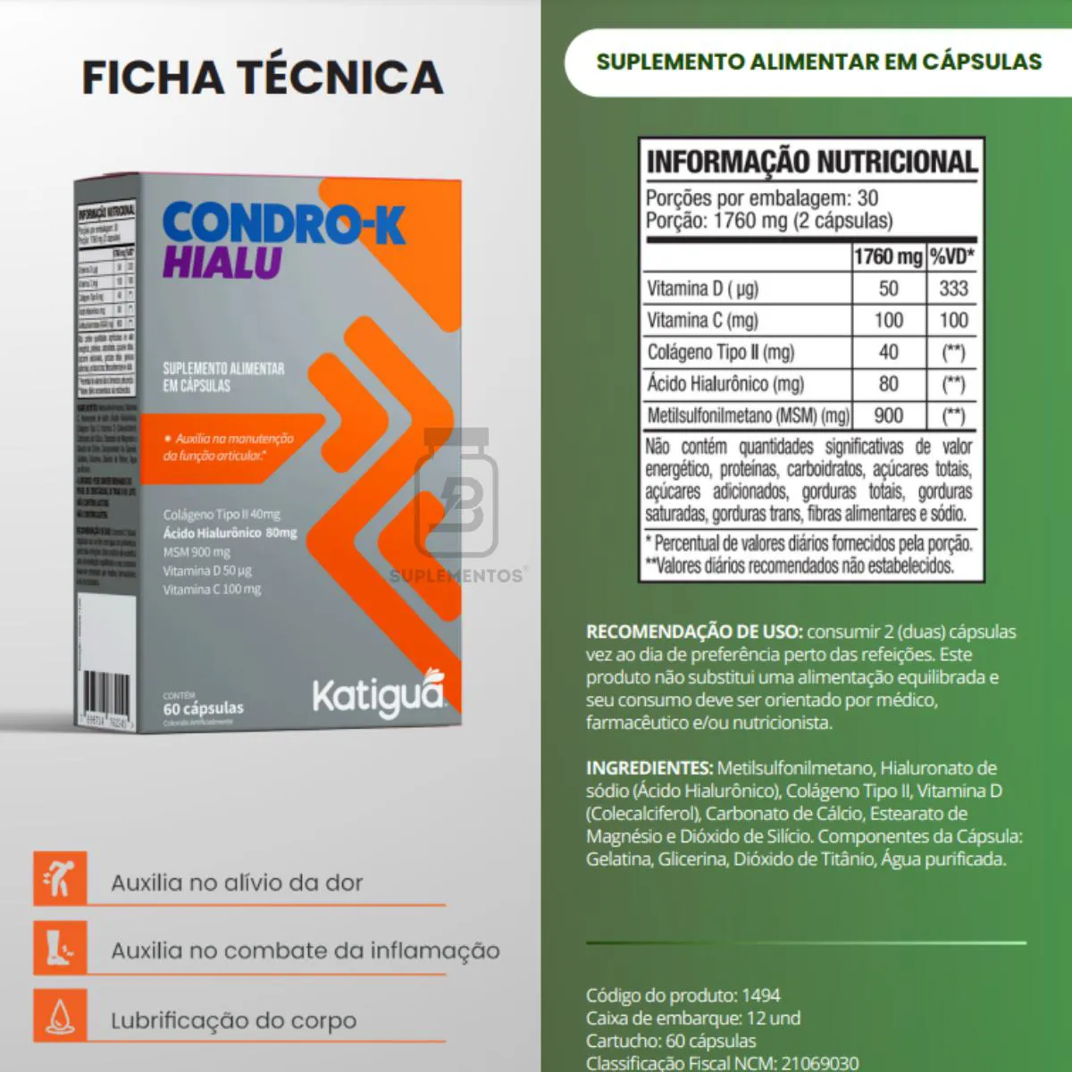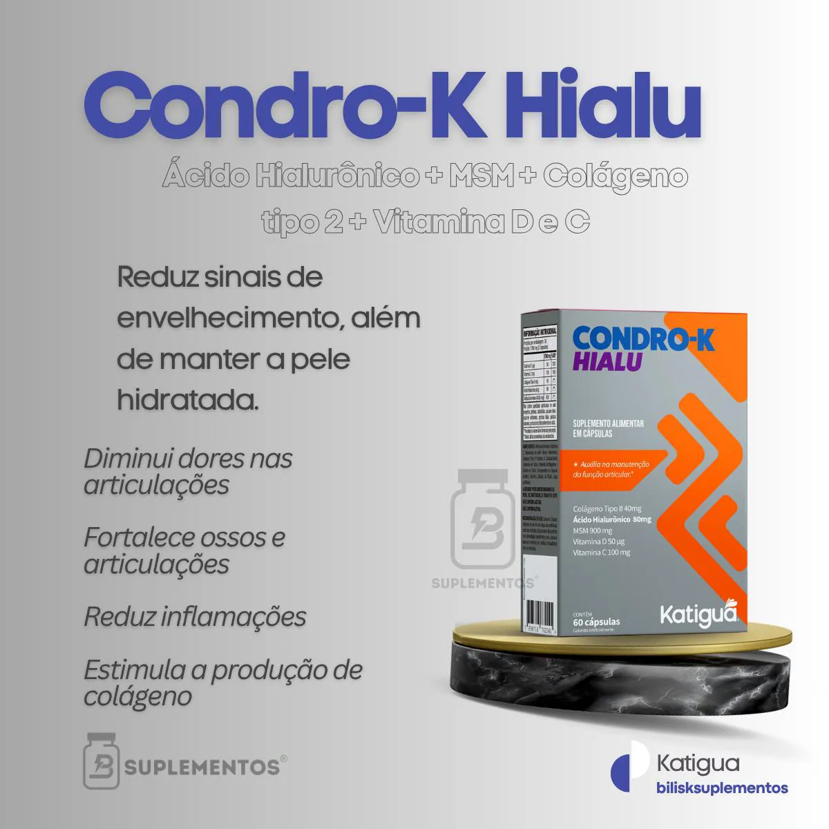O que é e para que serve o Condro-K Acido Hialuronico + Msm + Colageno Tipo Ii + Vitaminas 60Caps Katigua?