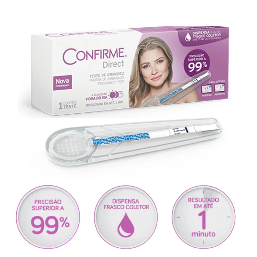 O Confirme Direct é um teste de gravidez rápido, prático e confiável, desenvolvido para uso em casa. Ele detecta a presença do hormônio hCG (gonadotrofina coriônica humana) na urina, que começa a ser produzido logo após a implantação do embrião.