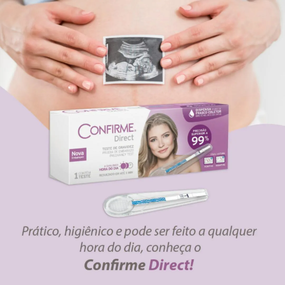 Conteúdo da Embalagem:1 unidade de Confirme Direct Teste de GravidezFolheto explicativo com instruções de uso