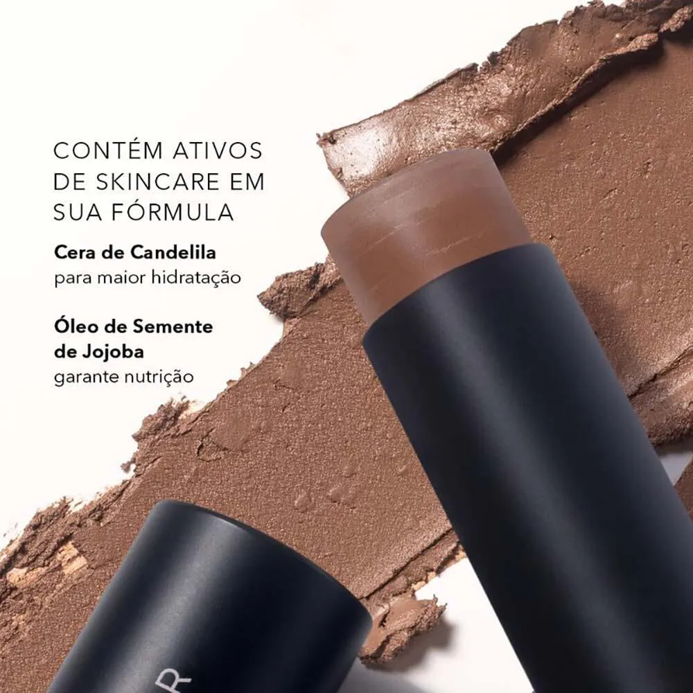 Vale ressaltar sua longa durabilidade , permitindo que seu visual permaneça impecável por horas sem necessidade de retoques. Este contorno facial é enriquecido com cera de candelila e óleo de semente de jojoba, facilitando seu trabalho na hora de esfumar o contorno na pele. Com alta pigmentação e uma textura cremosa que não escorre, ele mantém a pele intacta e sem oleosidade.