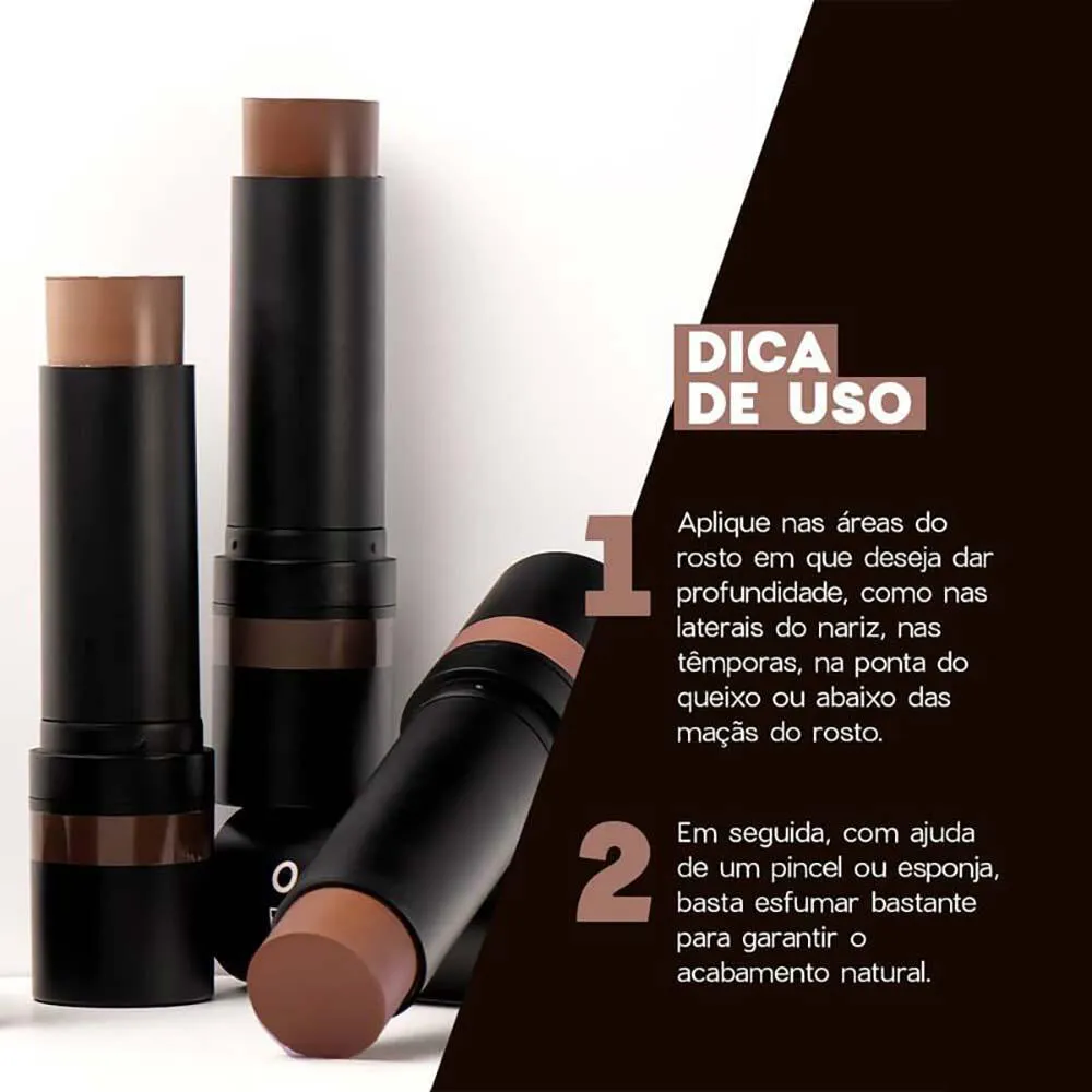 Seu design em formato de bastão torna o processo de contorno na maquiagem preciso e extremamente confortável.