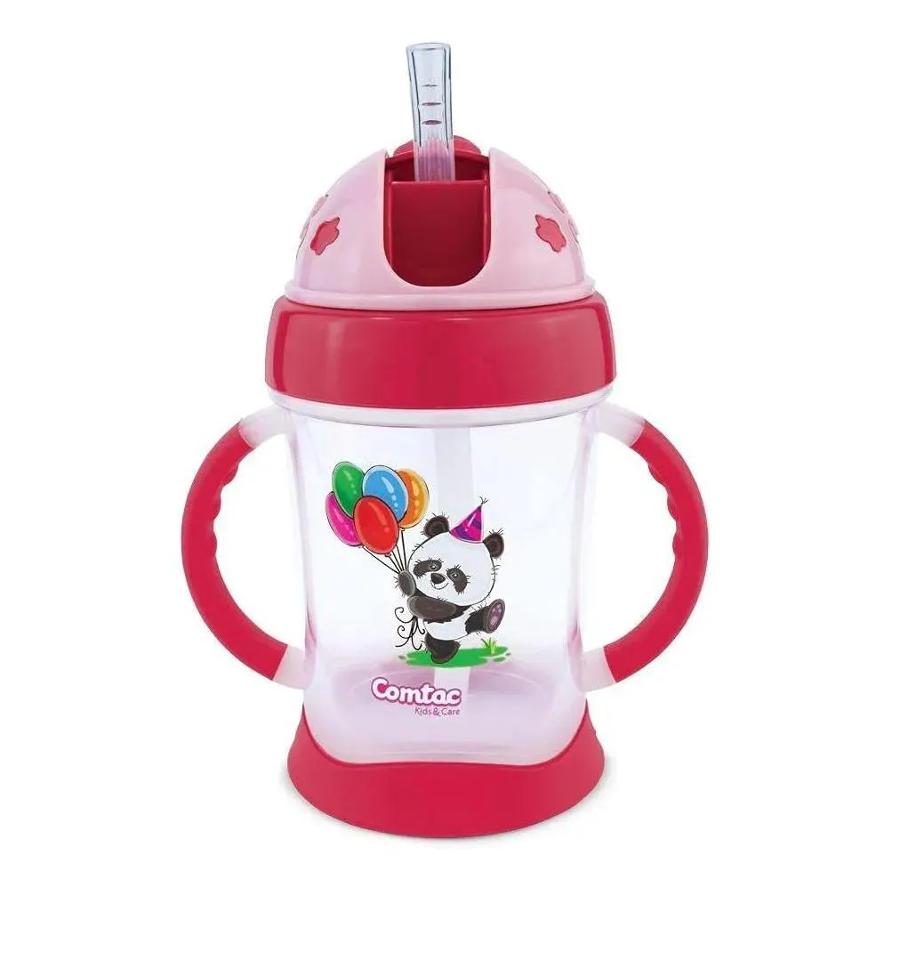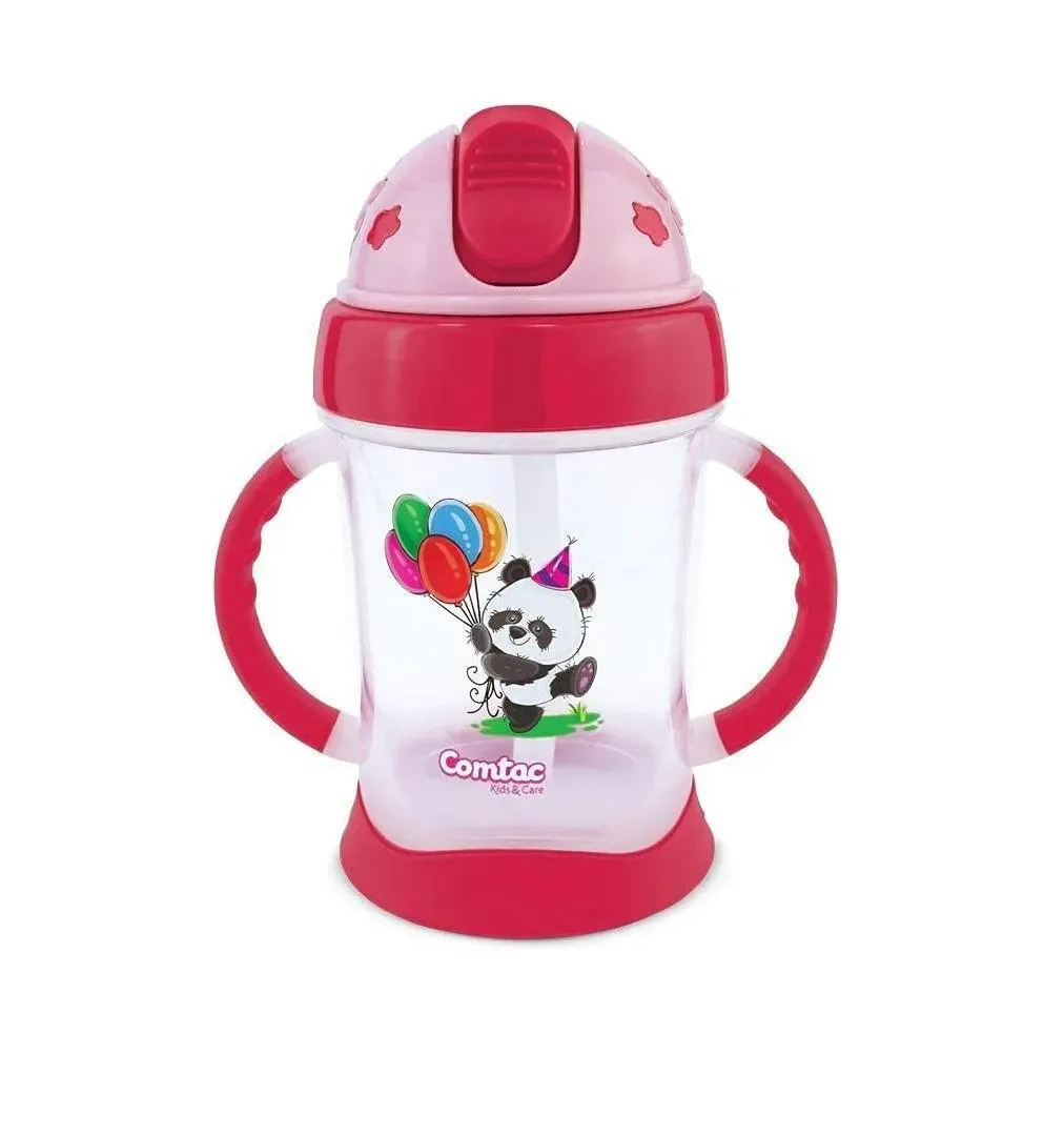 Copo Treinamento com Canudo Panda Rosa 250Ml Comtac Kids