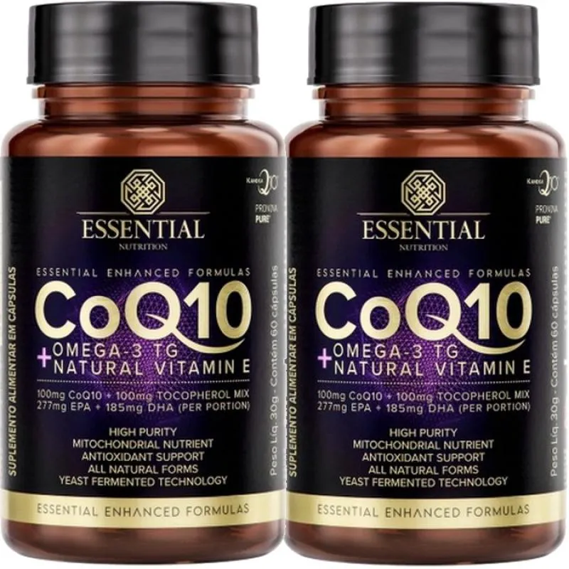 Coq10 Coenzima Q10 + Omega 3 + Vitamina E - (2 Unidades 60 Caps Cada) - Essential Nutrition