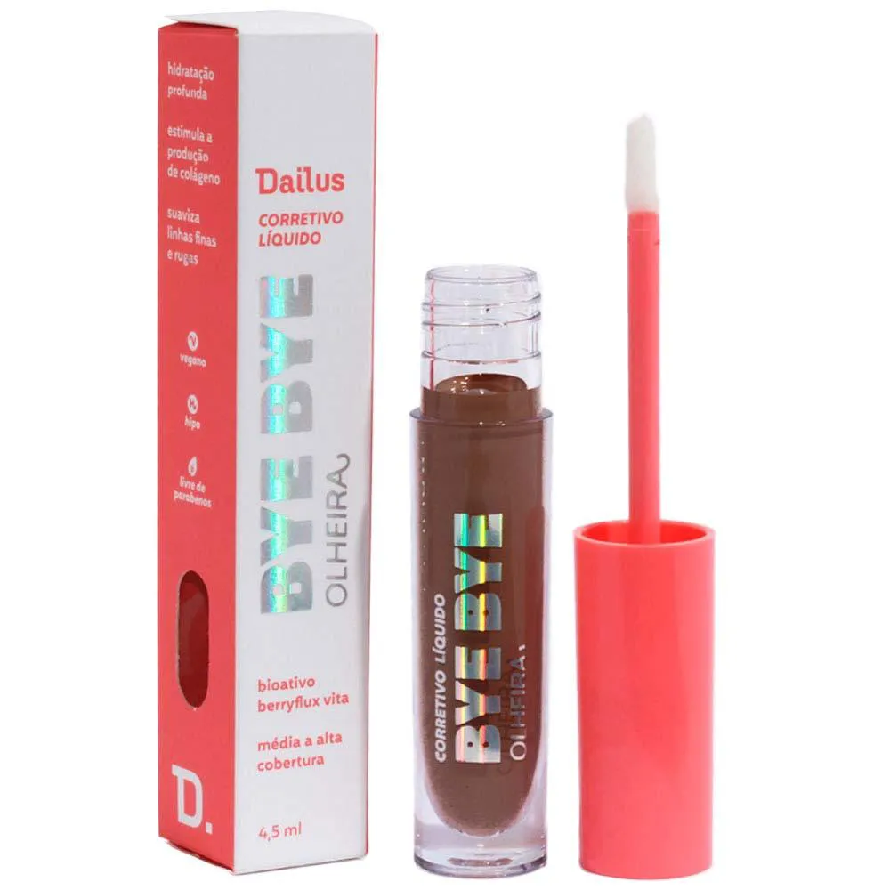 O corretivo Líquido Bye Bye Olheira da DAILUS chegou com tudo! Com média a alta cobertura e acabamento acetinado, é ideal para disfarçar olheiras, corrigir imperfeições e uniformizar o tom da pele.