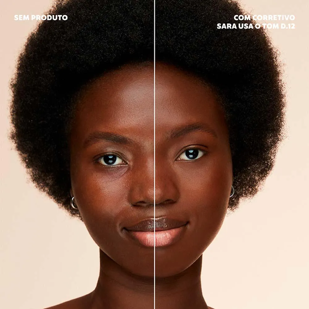 Além de ser ideal pra corrigir olheiras e imperfeições, o nosso corretivo também pode ser usado pra fazer a pele completa, sabia? Nos dias em que você quer praticidade ou um simples retoque no make, espalhe o produto no rosto com a ajuda do aplicador e esfume dando batidinhas com uma esponjinha. Fica supernatural!