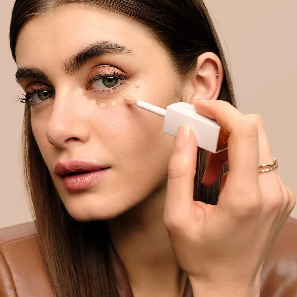 Utilize o aplicador em formato de diamante, que é curvilíneo, para uma aplicação rápida e eficiente, desfocando e escondendo áreas escuras e olheiras.