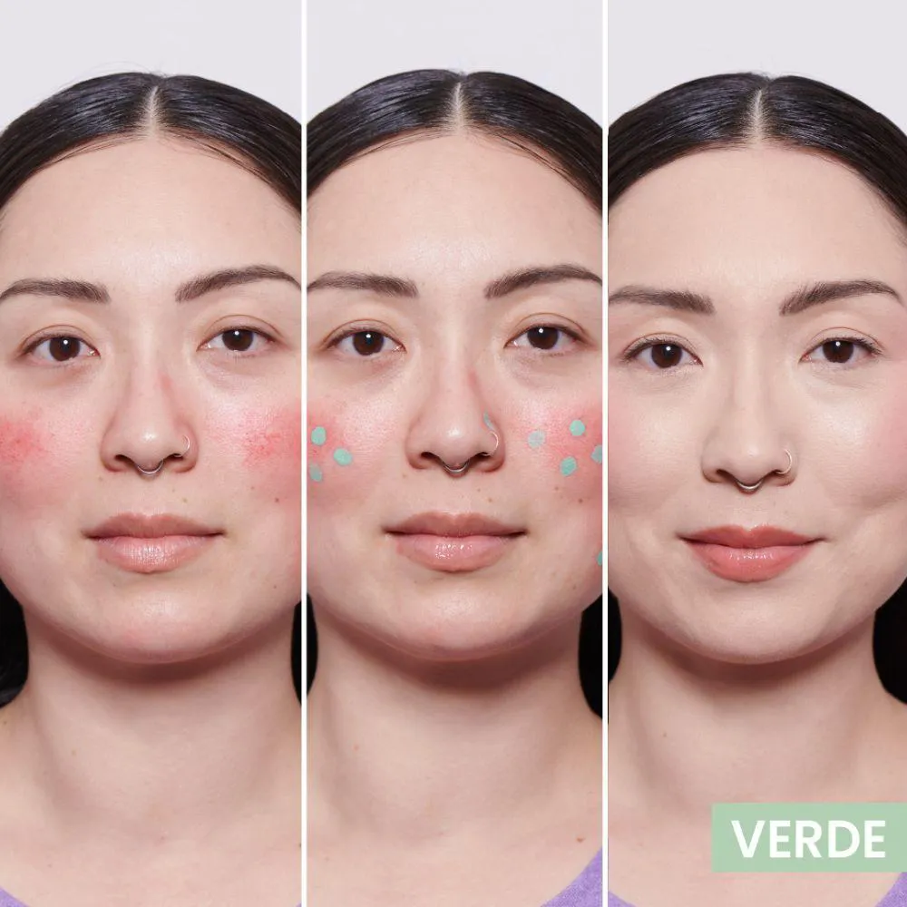 A cor Verde foi formulada especialmente para neutralizar tons avermelhados, como manchas de espinhas e rosácea, proporcionando um acabamento matte impecável.