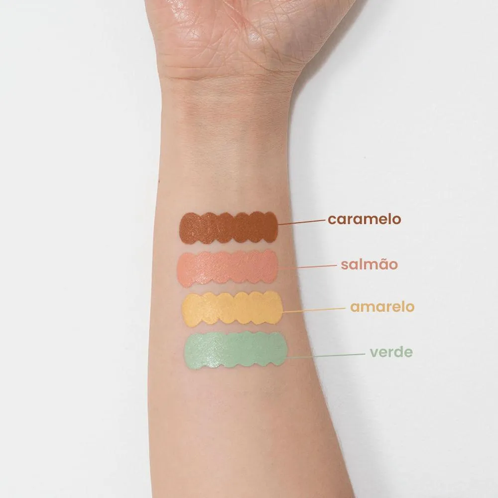 A cor Amarelo foi especialmente desenvolvido para neutralizar tons arroxeados, como olheiras e manchas na pele.