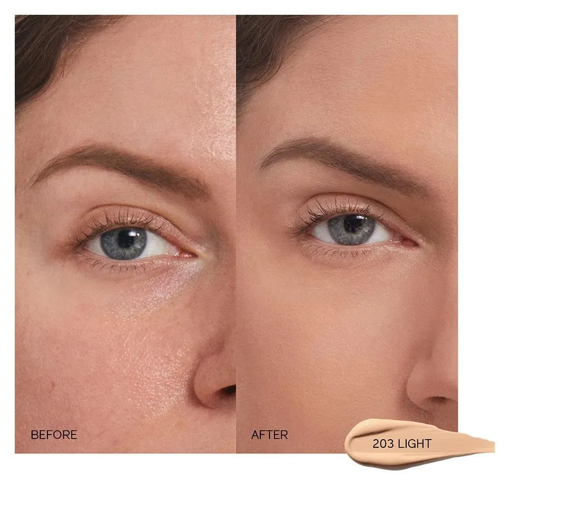 Um corretivo líquido de alta duração que diminui imediatamente a aparência de imperfeições, com cobertura média a alta e acabamento natural.