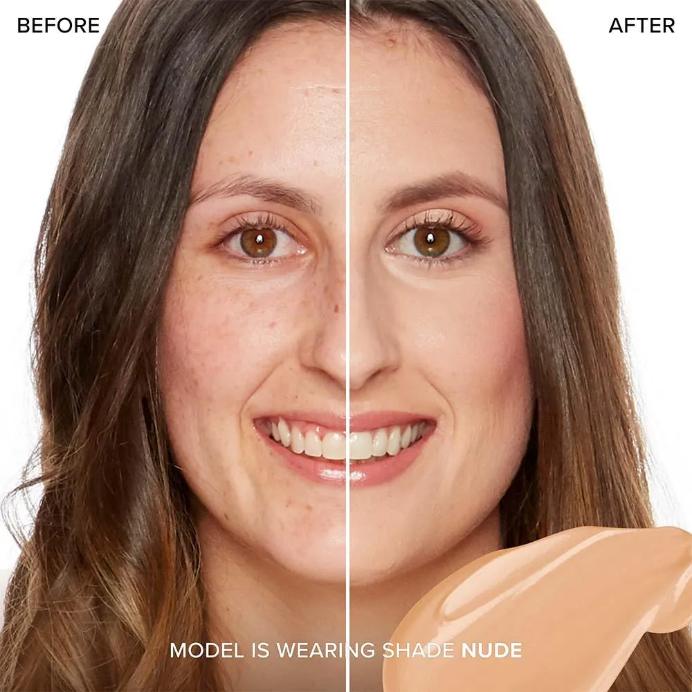 Para retocar e ocultar a hiperpigmentação ou tom de pele irregular: coloque um ponto diretamente na area de tom irregular e misture na pele com os dedos, pincel de corretivo ou esponja do tipo Beauty Blender em um movimento de pressão (pontilhado) até ficar perfeito.