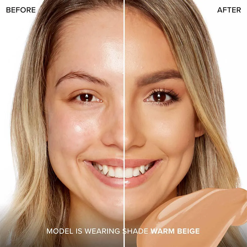 Corretivo: Aplique um ponto sob os olhos ou sobre hiperpigmentação – sempre que precisar de uma SUPER cobertura – e bata com os dedos ou uma esponja até obter um acabamento perfeito. Até esconde tatuagens