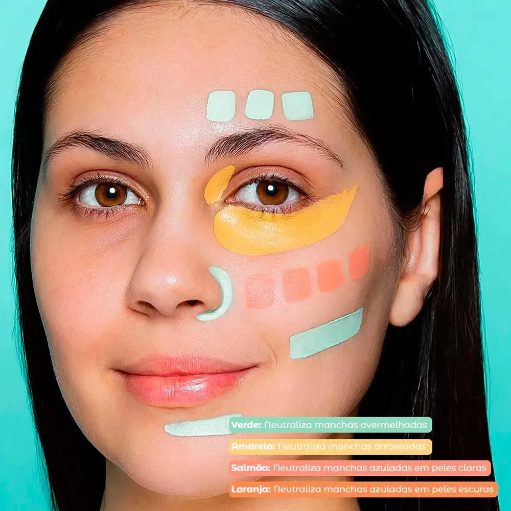Ele deve ser utilizado antes do corretivo do tom da pele para neutralizar o tom da mancha de acordo com o círculo cromático.