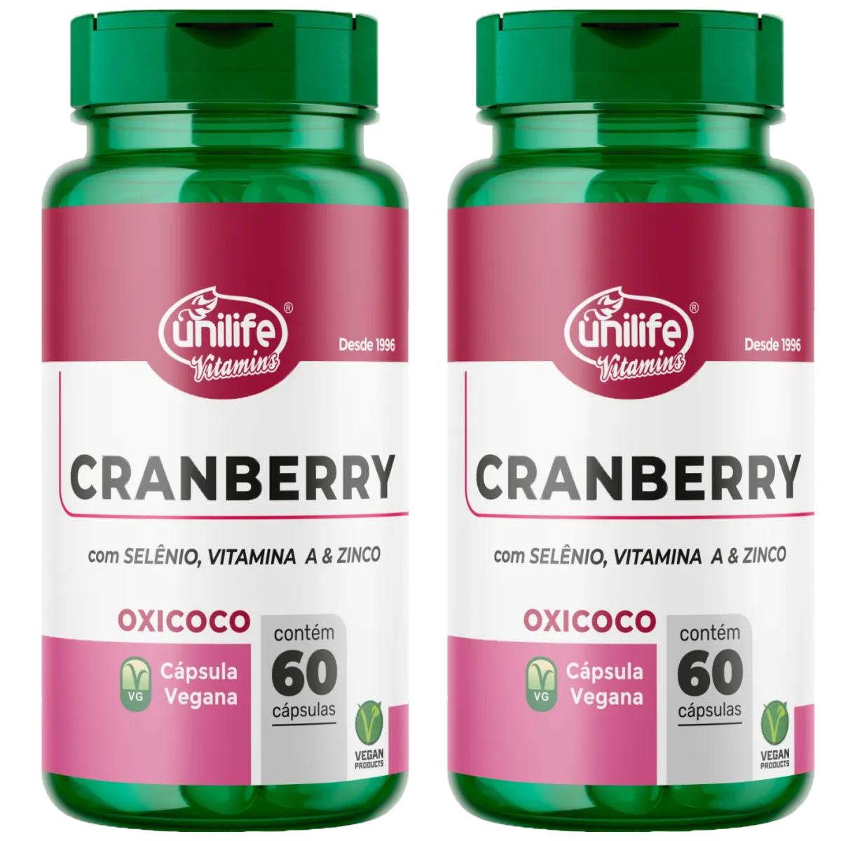 O Cranberry da Unilife é um suplemento alimentar em cápsulas, elaborado a partir do extrato seco de cranberry, uma fruta rica em vitaminas e minerais. Este produto é enriquecido com selênio, zinco e vitamina a, nutrientes que auxiliam na função imunológica do organismo e potencializam a ação antioxidante.