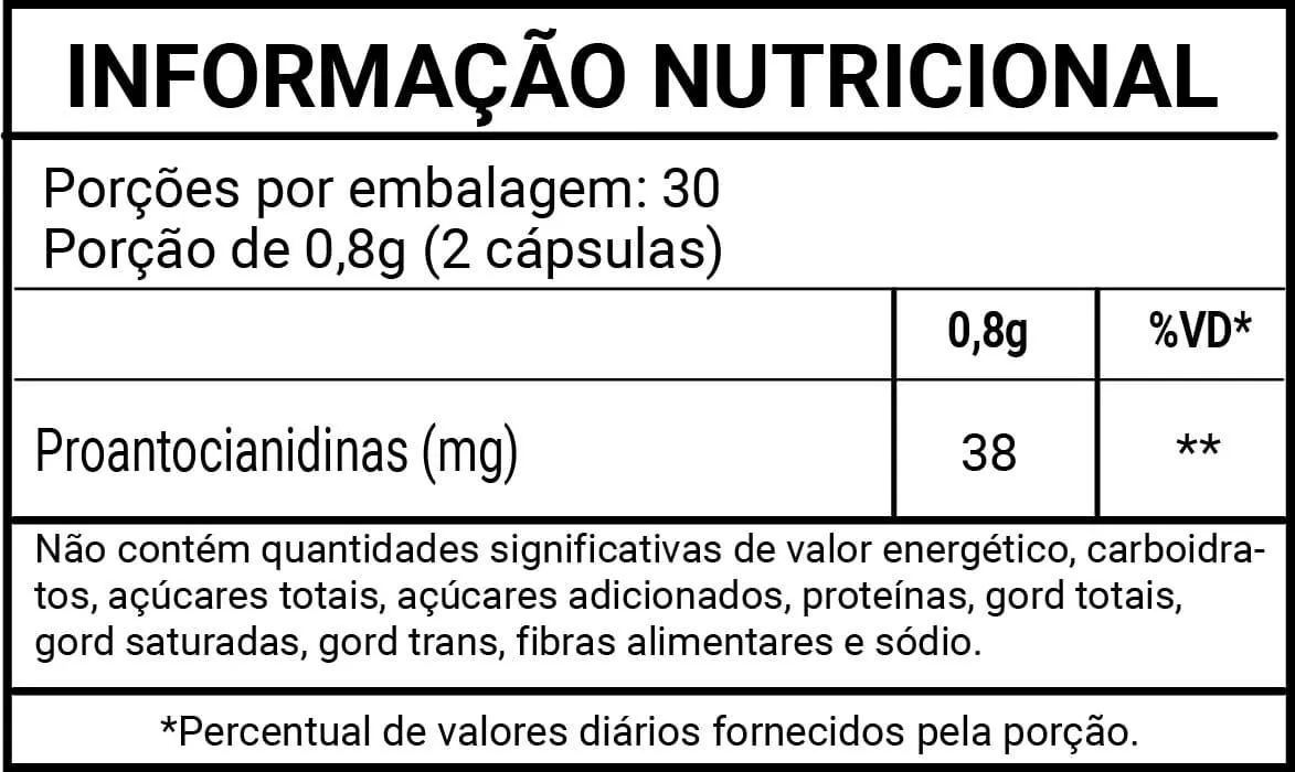 - Ingredientes Ativos: extrato de cranberry em pó, amido de milho.