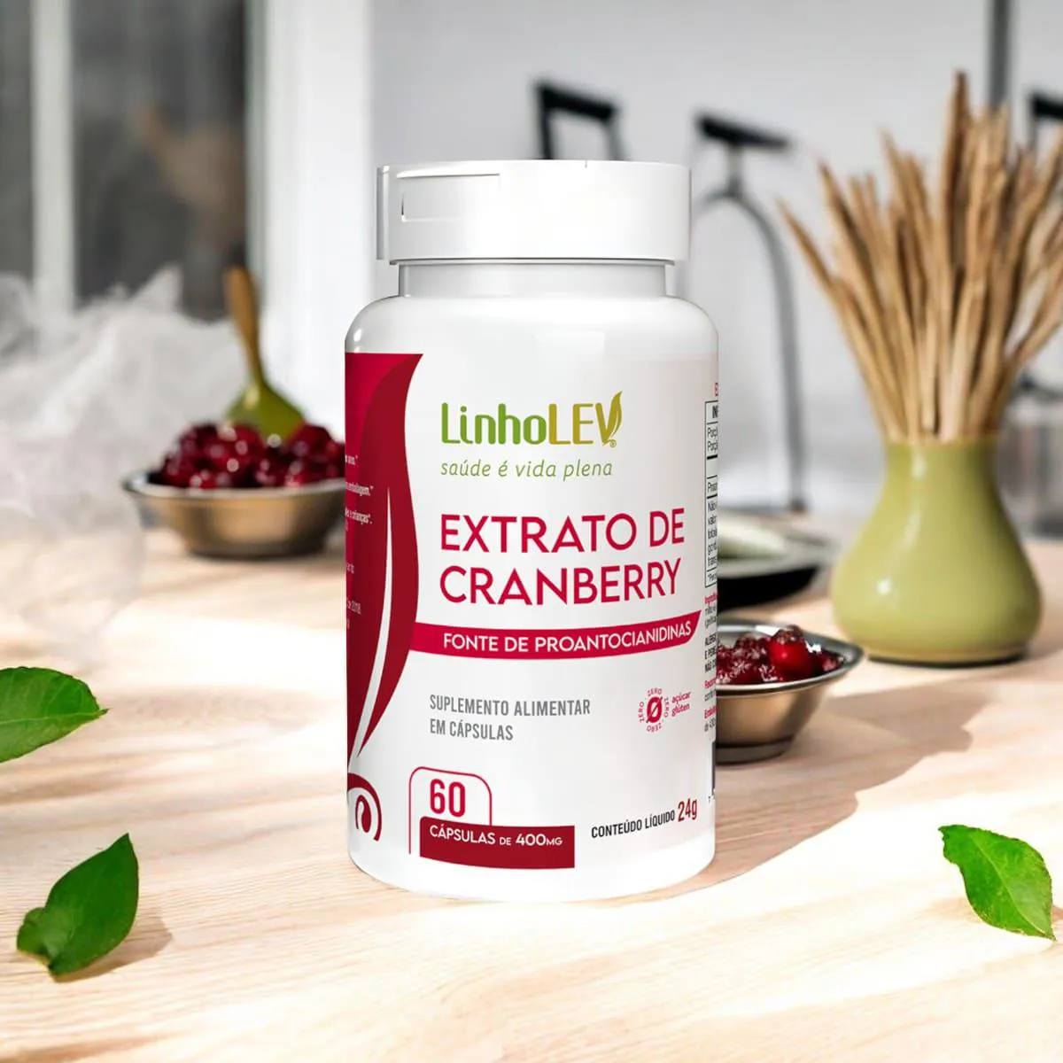 O Cranberry 60 Cápsulas da Linho Lev é um suplemento alimentar formulado com extrato de cranberry (Vaccinium macrocarpon) em pó. O cranberry é reconhecido por suas propriedades antioxidantes e por auxiliar na saúde do trato urinário.