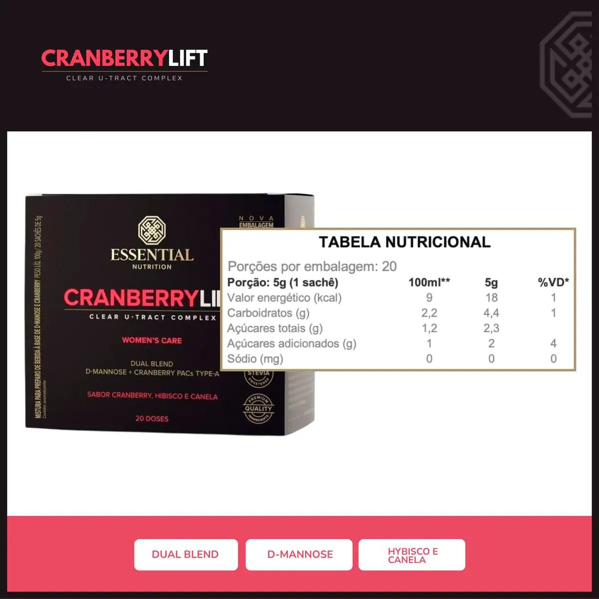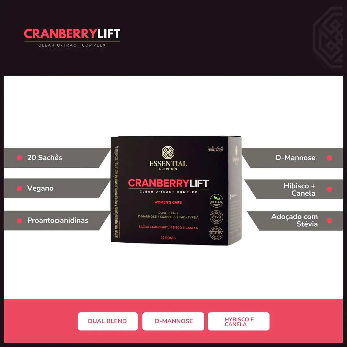 Cranberry Lift D-Manose e Hibisco Vegano (20 Saches) - Essential Nutrition
