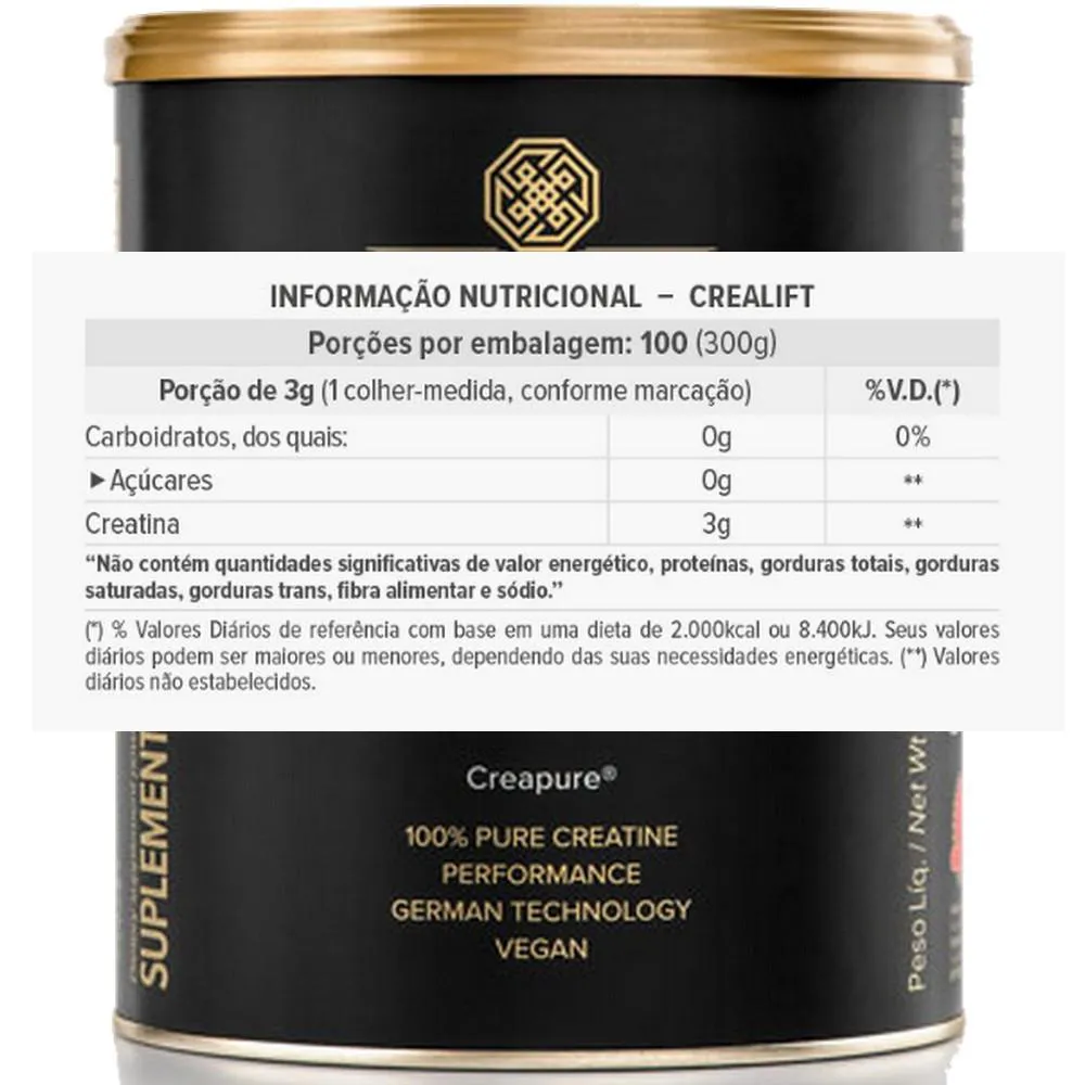 Crealift é 100% Creapure®, uma creatina alemã mono-hidratada vegana altamente purificada e reconhecida internacionalmente por sua superior qualidade.