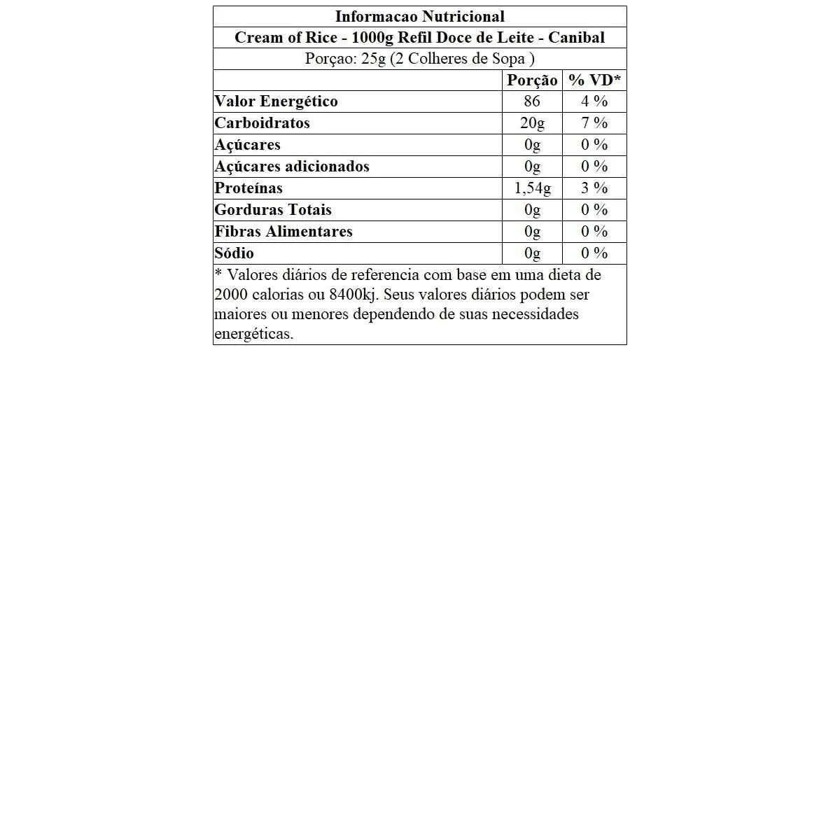 Cream Of Rice - 1000G Refil Doce de Leite - Canibal