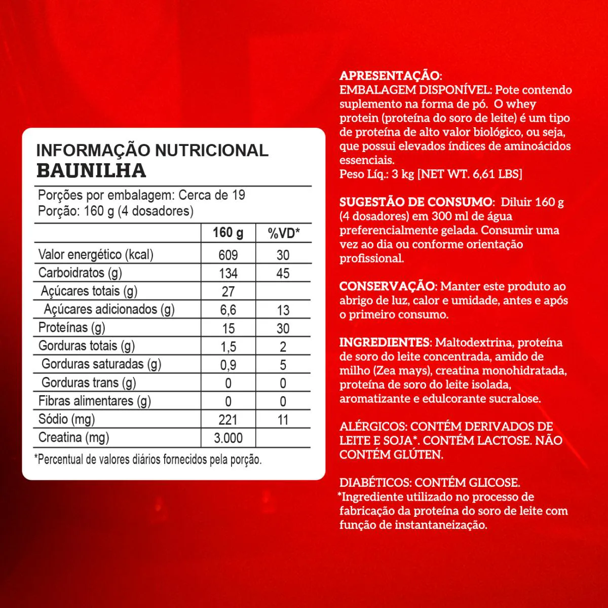 Creamass Hipercalorico com Creatina 3Kg Baunilha