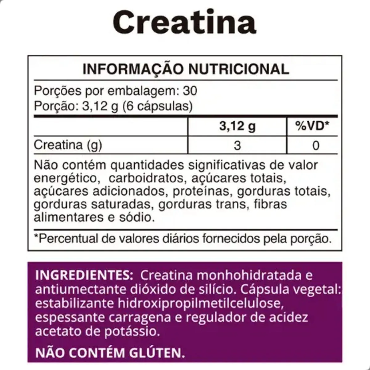 - Creatina pura sem aditivos artificiais.