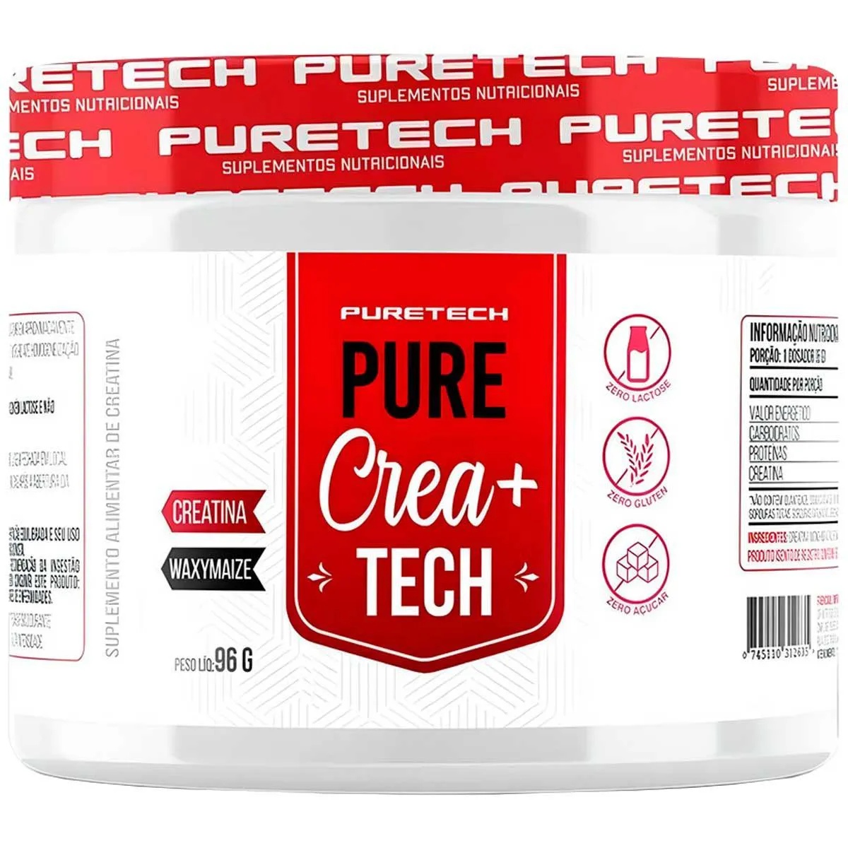 Creatina com Carboidrato Crea+ Pote 96G Puretech sem Sabor