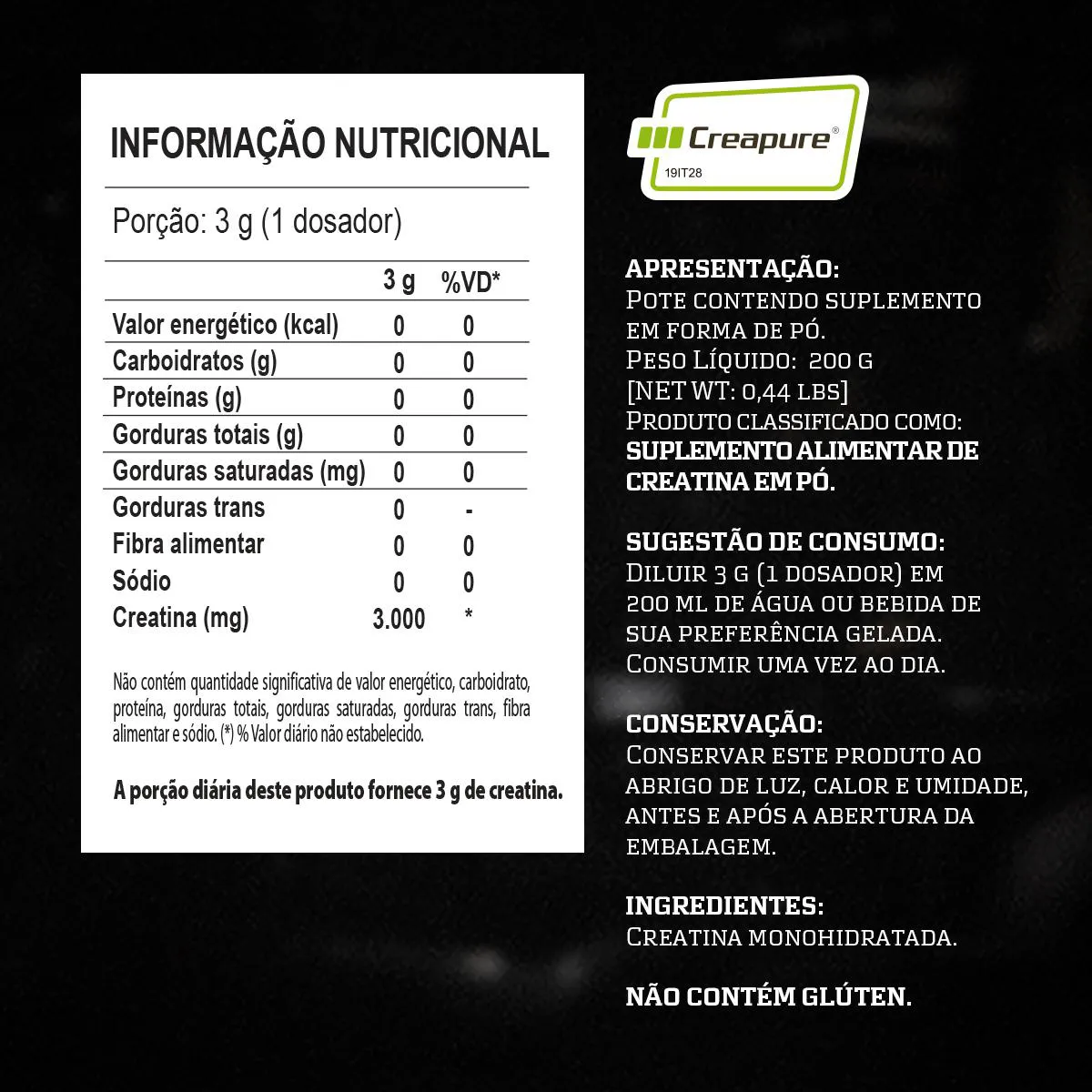 Qualidade real para ganhos reais, a Creatina Creapure Darkness traz em sua formulação o selo de pureza e qualidade Creapure, utilizado pelos mais exigentes atletas de fisiculturismo. Ideal para quem busca aumento extremo de força, mais massa muscular e explosão durante os treinos.