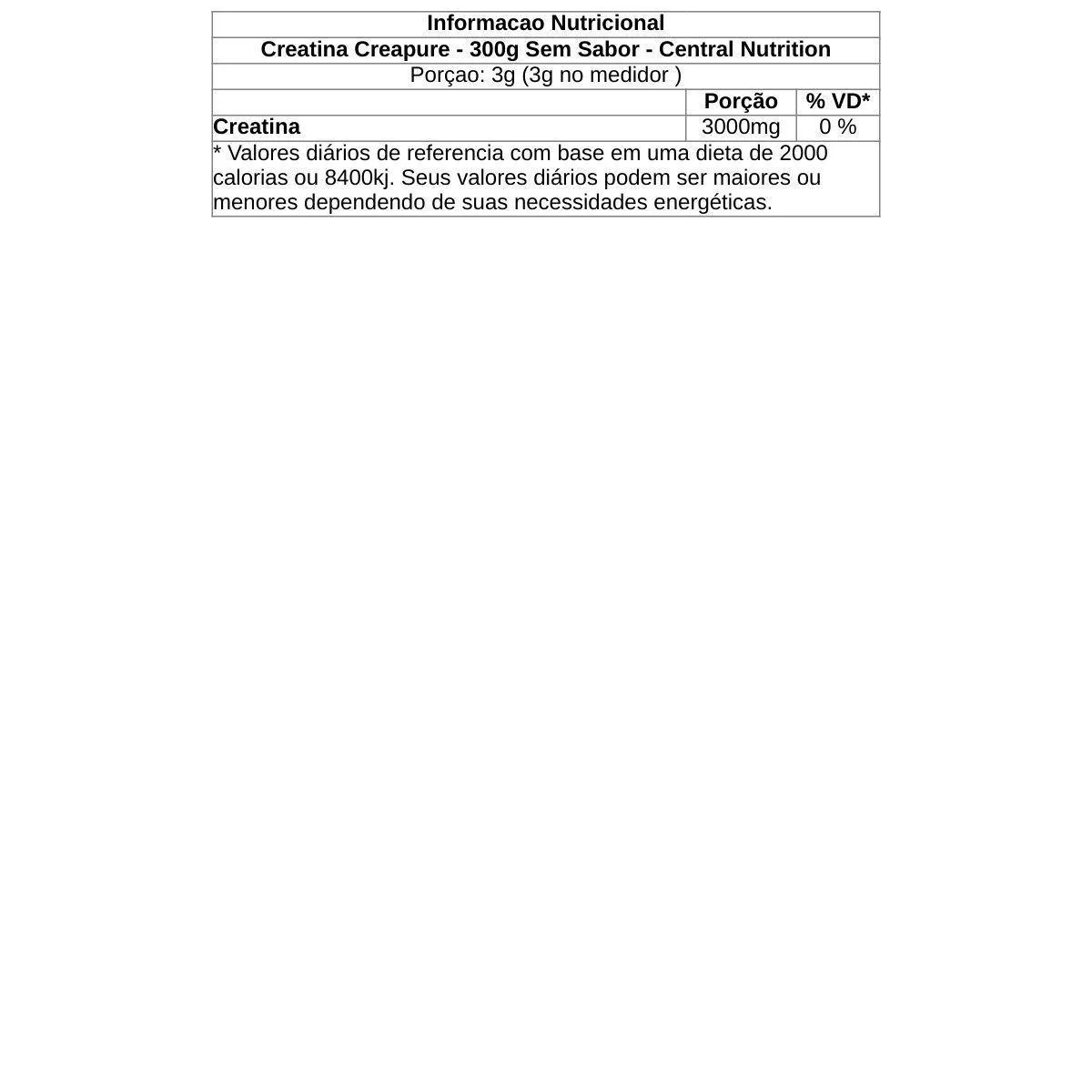Creatina Creapure - 300G sem Sabor - Central Nutrition