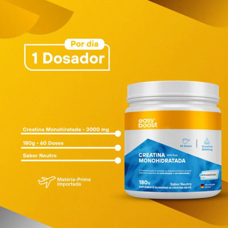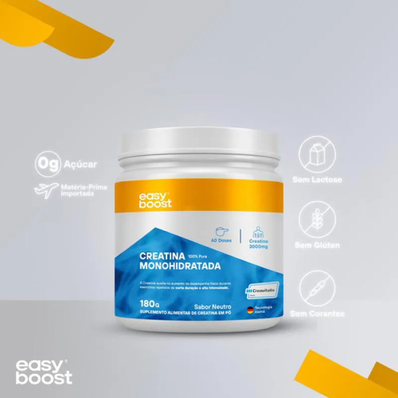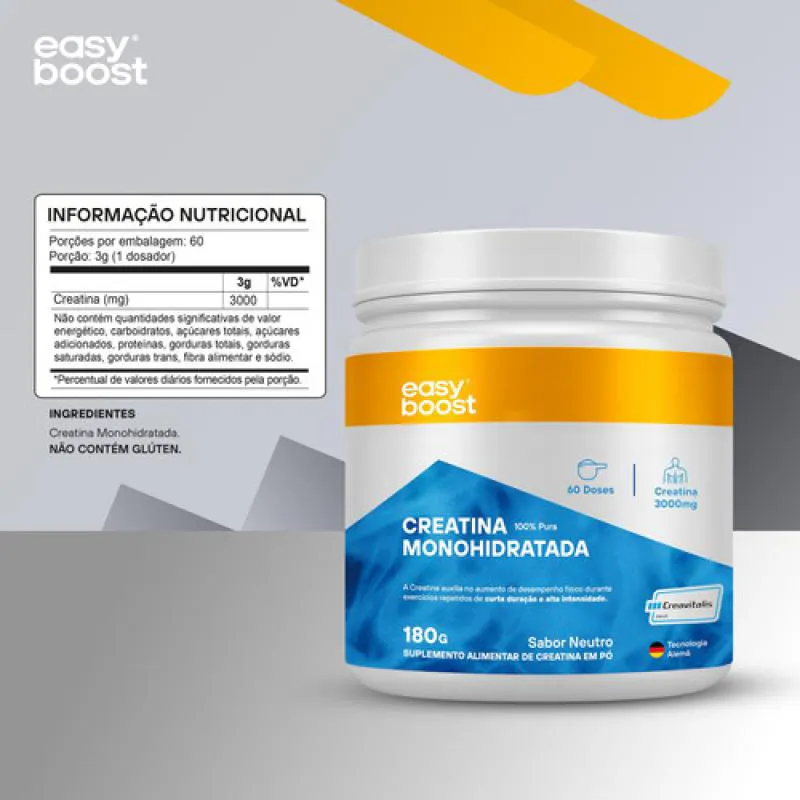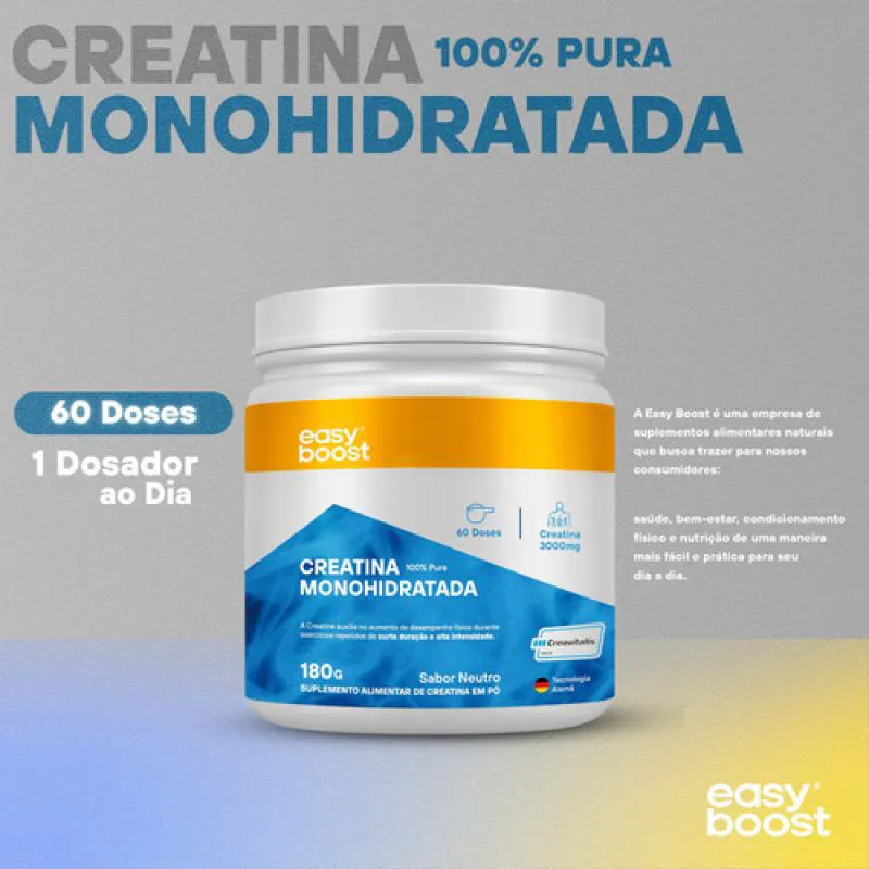 Neste anúncio você irá adquirir 1 pote de Creatina Monohidratada CREAVITALIS 100% Easy Boost 180g (60 DOSES) com uma validade longa, de no minímo 12 meses.