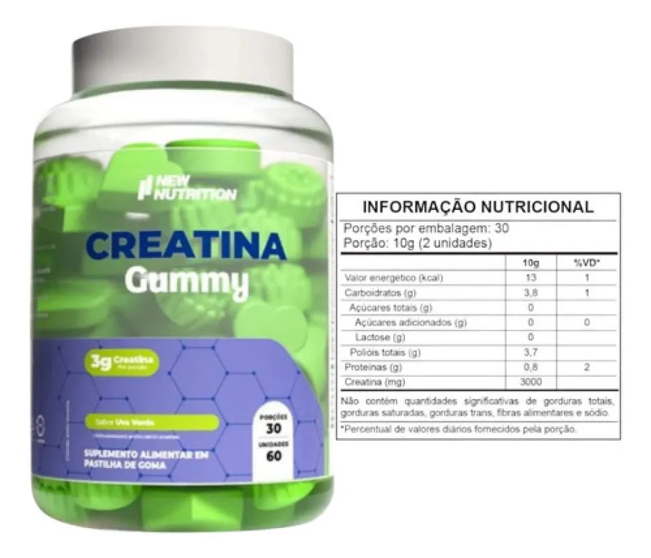 Creatina Gummy Uva Verde 60 Gummys 30 Doses New Nutrition