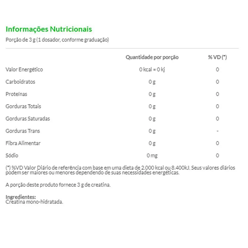 Creatina Integralmedica 300g é composto por pura creatina mono-hidratada, sem adição de corantes, aromas ou conservantes artificiais.