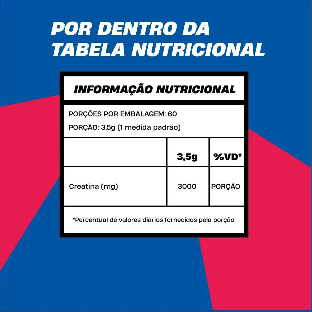 Creatina monohidratada, acidulante ácido cítrico, aroma idêntico ao natural, corante natural beterraba e edulcorante glicosídeos de esteviol. NÃO CONTÉM GLÚTEN.