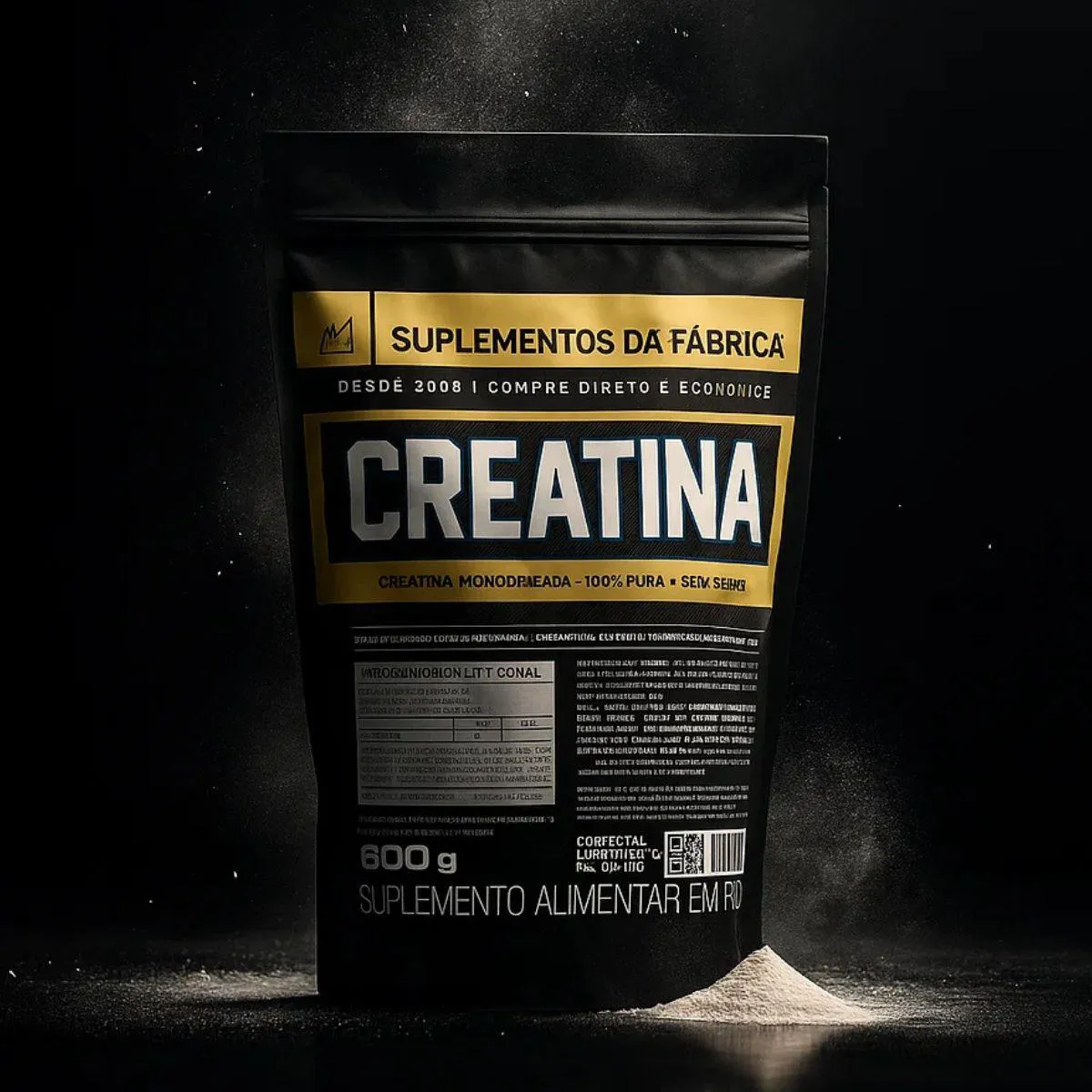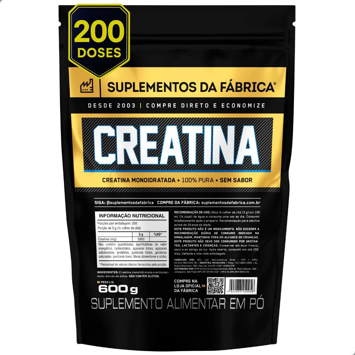 A composição apresenta creatina monohidratada pura, sem misturas desnecessárias e com padronização rigorosa. Cada lote passa por processos internos de conferência, envase e controle, garantindo transparência e qualidade do início ao fim. A escolha por matéria prima importada reforça a proposta da marca de entregar o mesmo padrão encontrado em grandes fabricantes, porém com valor mais acessível graças ao modelo direto da fábrica, que elimina custos extras e prioriza eficiência produtiva.