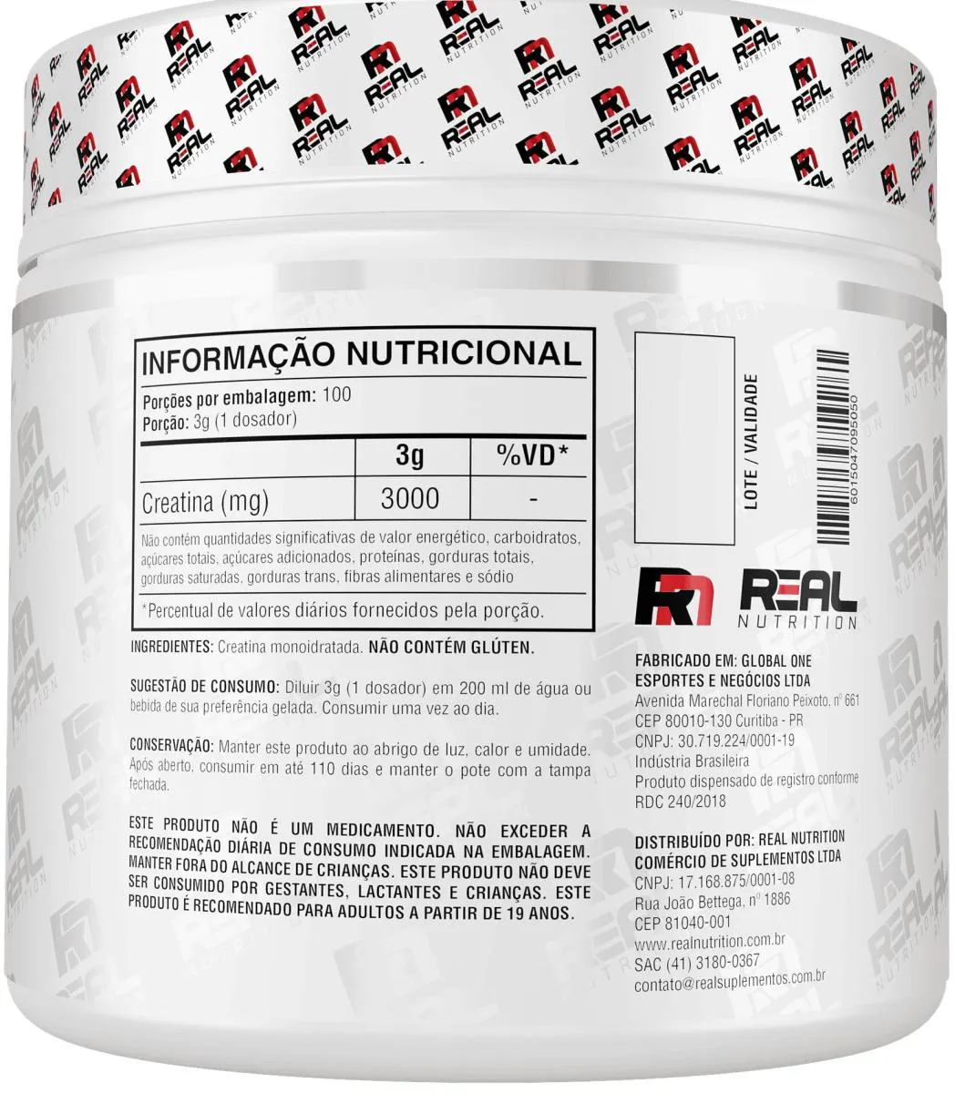 CREATINA MONOHIDRATADA 100% PURA REAL NUTRITION - 300G