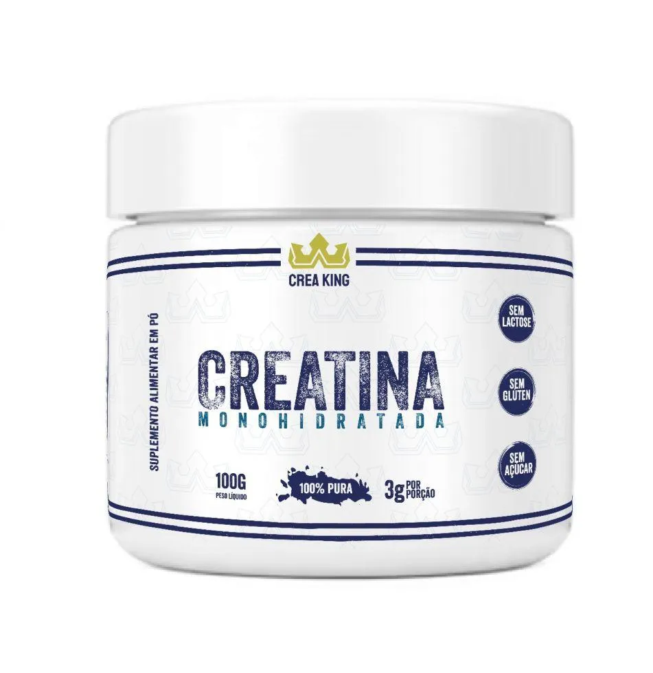 Creatina Monohidratada (100g) - Crea King A creatina é a chave para força, resistência e recuperação aprimoradas, sendo um suplemento popular entre atletas e entusiastas do fitness, e por boas razões. Este composto natural, encontrado no corpo e em alimentos como carne vermelha e peixe, oferece uma série de benefícios significativos para o desempenho esportivo e a saúde em geral, tais como: * Aumento da força e potência muscular;* Ganho de massa muscular;* Melhora a performance dos treinos;* Melhoria do desempenho de alta intensidade* Recuperação mais rápida;* Revigora as fontes de energia;* Melhoria cognitiva;* Evita fadiga muscular. A Crea King é uma marca focada em Creatinas, sendo que todos os seus produtos possuem Creatina na composição. Nossa missão é ajudá-lo a conquistar seus objetivos proporcionando mais força e desempenho através da ingestão de Creatina.