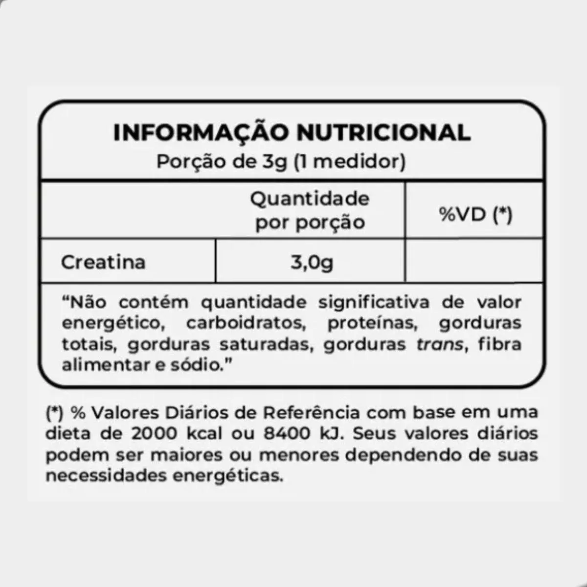 Sua composição creatina monohidratada micronizada de alta qualidade; sem aditivos, glúten ou lactose. e não inclui componentes de origem animal ou alergênicos comuns, adaptando-se a diferentes estilos de vida.