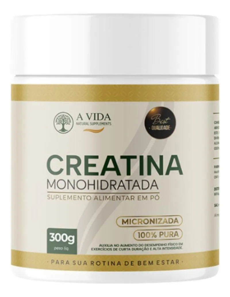 Creatina Monohidratada 300 gramas — A Vida Natural Supplements Creatina 100% pura, alto grau de pureza e rendimento para uso diário. Pote econômico de 1kg, ideal para quem treina e também para toda a família que busca mais qualidade de vida. Auxilia no desempenho em exercícios de alta intensidade e contribui para a composição de massa muscular, apoiando treinos de força e rotina ativa. Sem carboidratos, sem glúten e sem aditivos. Ingredientes: Creatina monohidratada pura e antiumectante.