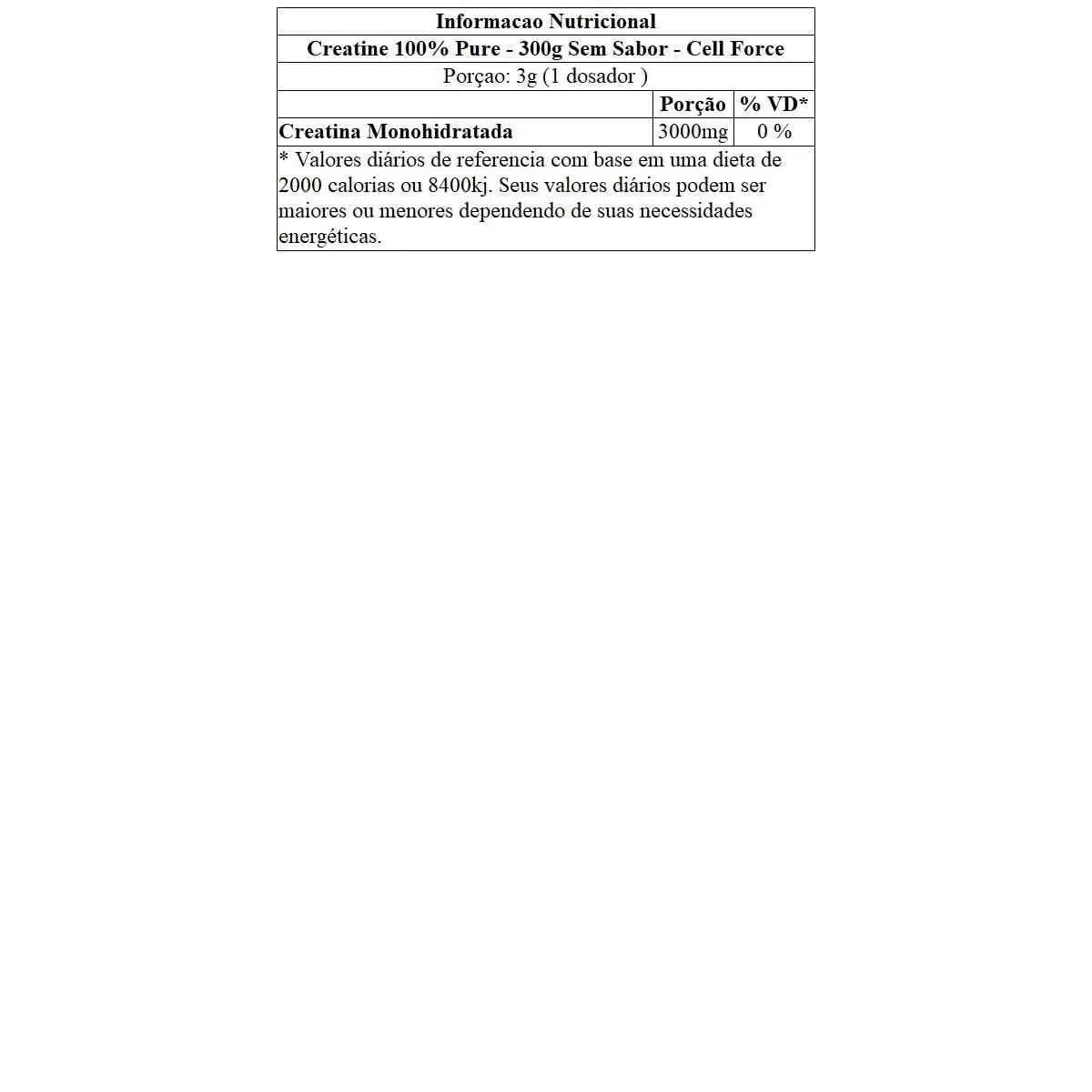 Creatine 100% Pure - 300G sem Sabor - Cell Force